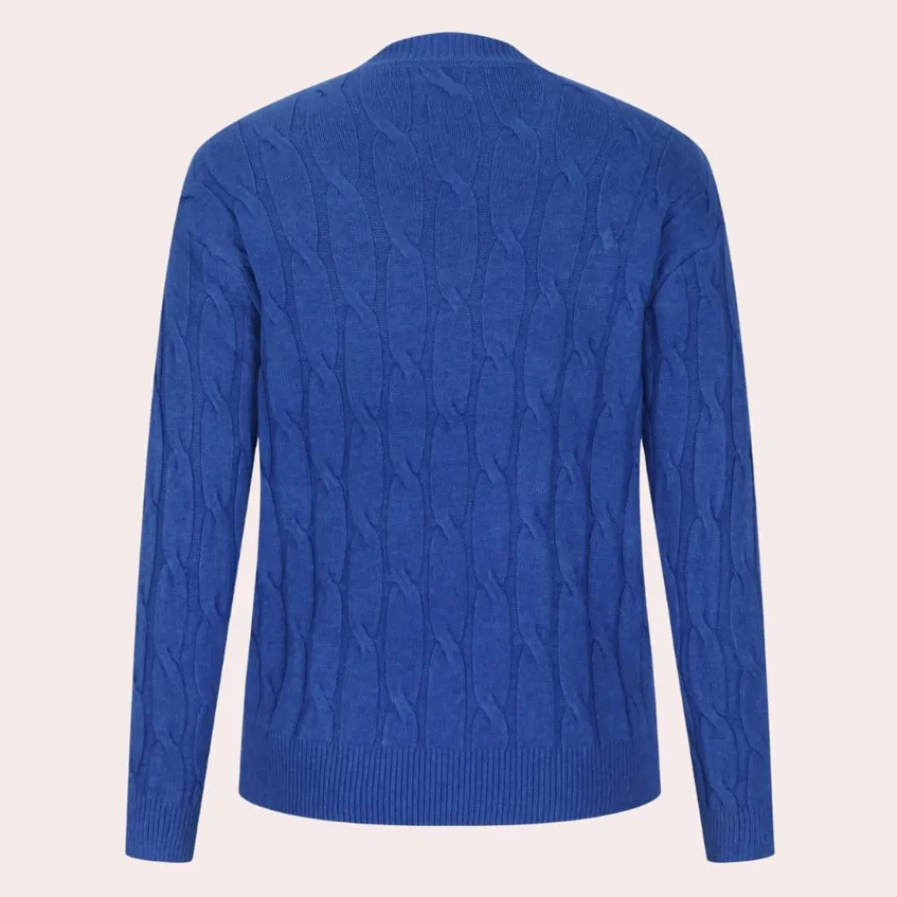 Het klassieke breipatroon en de veelzijdige kleur maken het een essentieel item in elke garderobe, perfect voor zowel casual als formele gelegenheden.