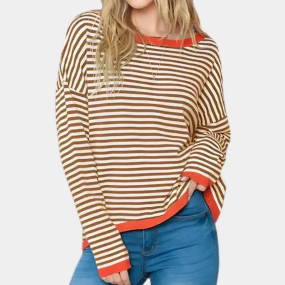 Voeg een vleugje verfijning toe aan je garderobe met de Marjorie Klassieke gestreepte damestrui. Het casual maar stijlvolle ontwerp en het tijdloze streeppatroon maken het de eerste keuze voor elke modebewuste persoon. Combineer hem met je favoriete jeans voor een casual look of met een rok voor een vleugje elegantie.