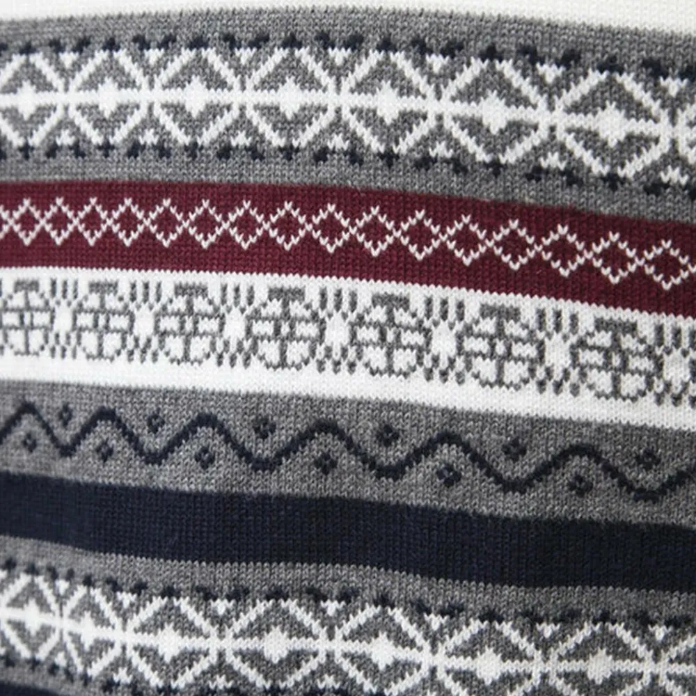 Ontdek de perfecte combinatie van comfort en stijl voor het koude seizoen met onze GAETANO stijlvolle trui voor mannen. Deze elegante trui met halve rits, hoge hals en etnische details is meer dan alleen een kledingstuk, het is een stijlstatement. Het etnische patroon en de gestanste zoom onderscheiden hem van veel andere truien dit seizoen en maken van elke dag een kans om je authentieke stijl te uiten!
