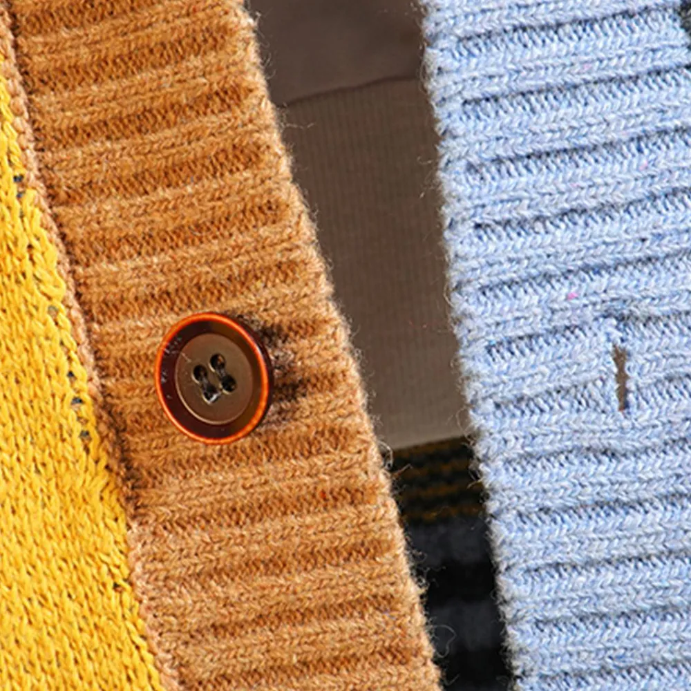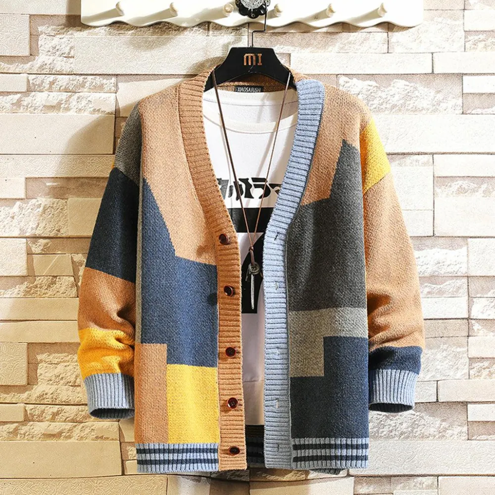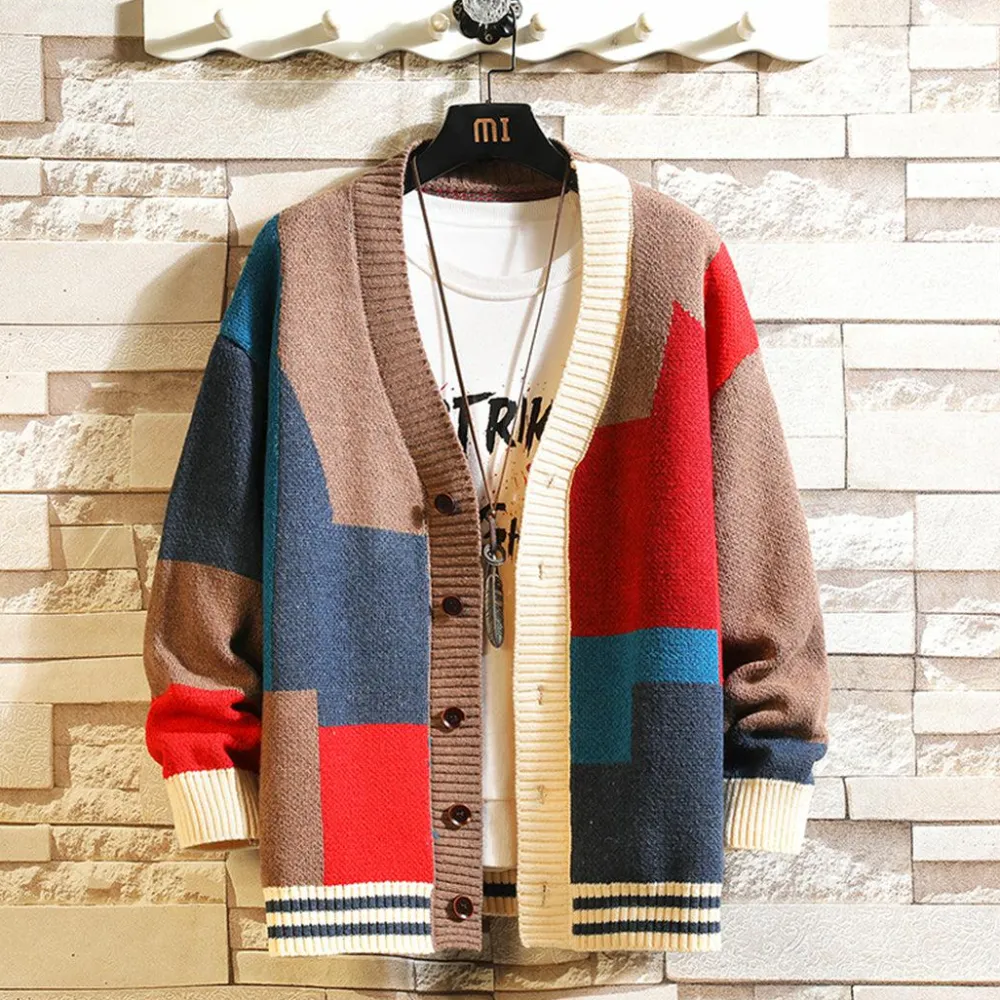Deze trui is niet voor de verlegenen onder ons. Dit kleurrijke vest van Van Halen Mode lijkt vooral te zijn gemaakt voor kunstenaars en degenen die een modestatement willen maken. Dat komt vooral door de grote kleurvlakken.
