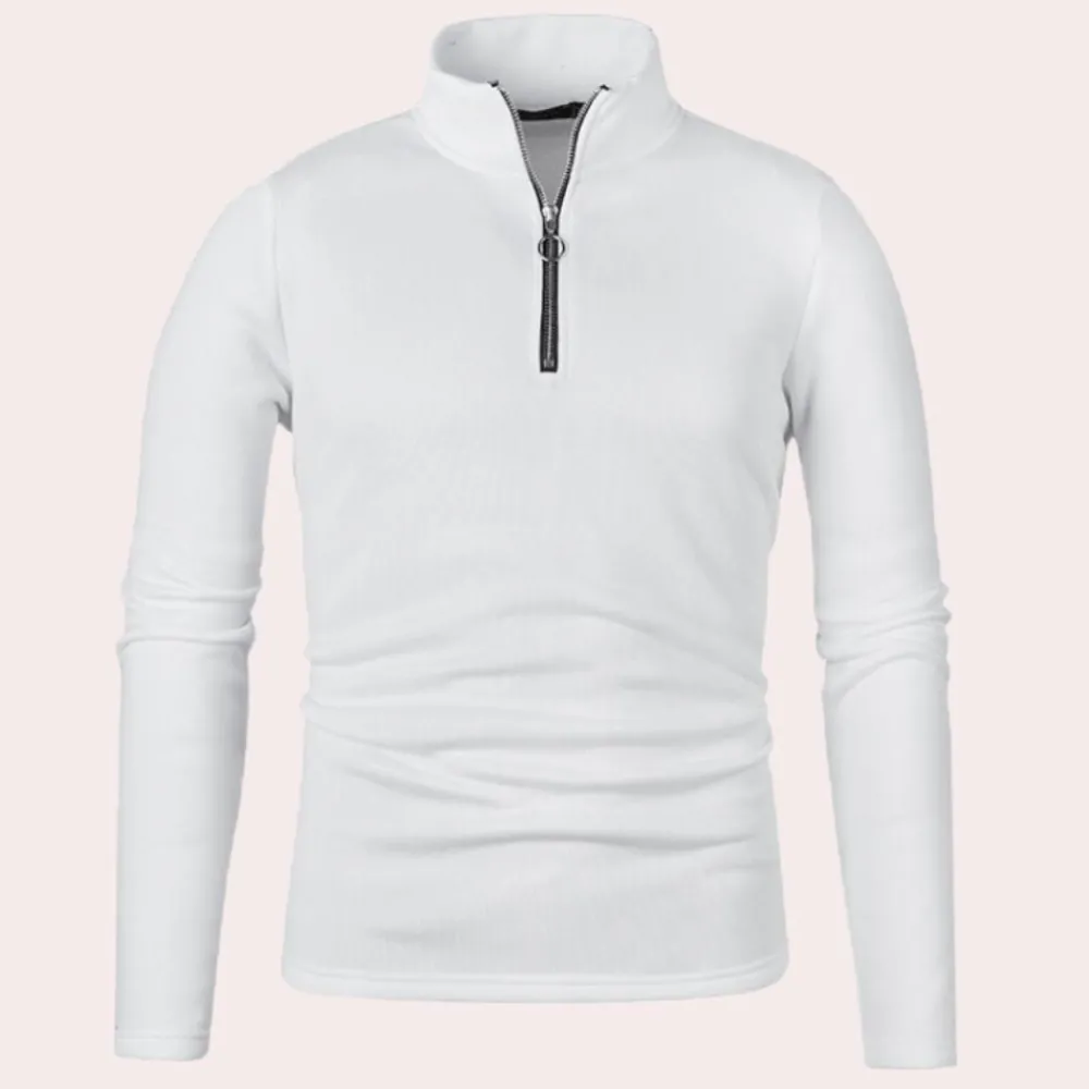 Hier heb je onze Maximilian Stijlvolle en warme herensweater met rits, Deze trui is zowel comfortabel als stijlvol voor het uitgaan, maar ook voor thuis op de bank. Deze trui is gemaakt van een comfortabele stof die geschikt is voor de lente, herfst en winter.