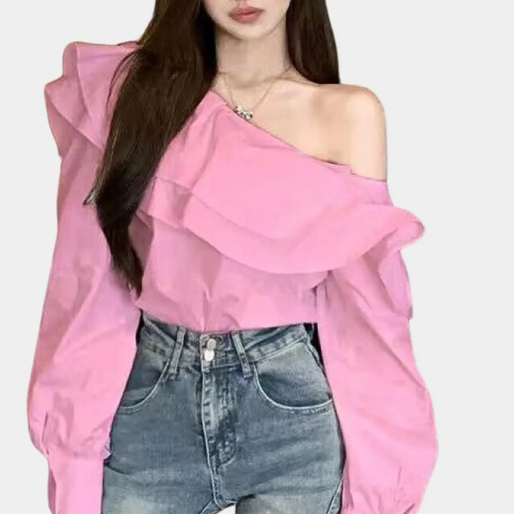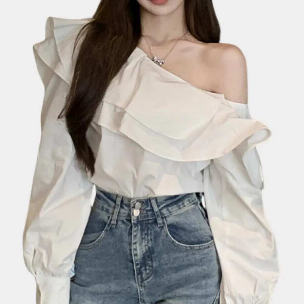 De Alena Elegante Off-Shoulder Blouse voor Dames. Deze blouse benadrukt een geraffineerde mix van stijl en eenvoud, perfect voor zowel modeprofessionals als casual zomerlooks. Het doordachte ontwerp biedt zowel comfort als een verfijnde look.