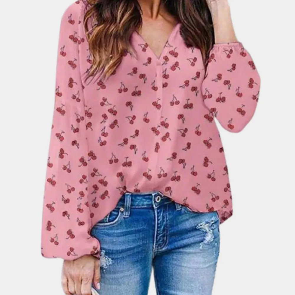 Comfortabele verfijning met een blouse met kersenprint!
