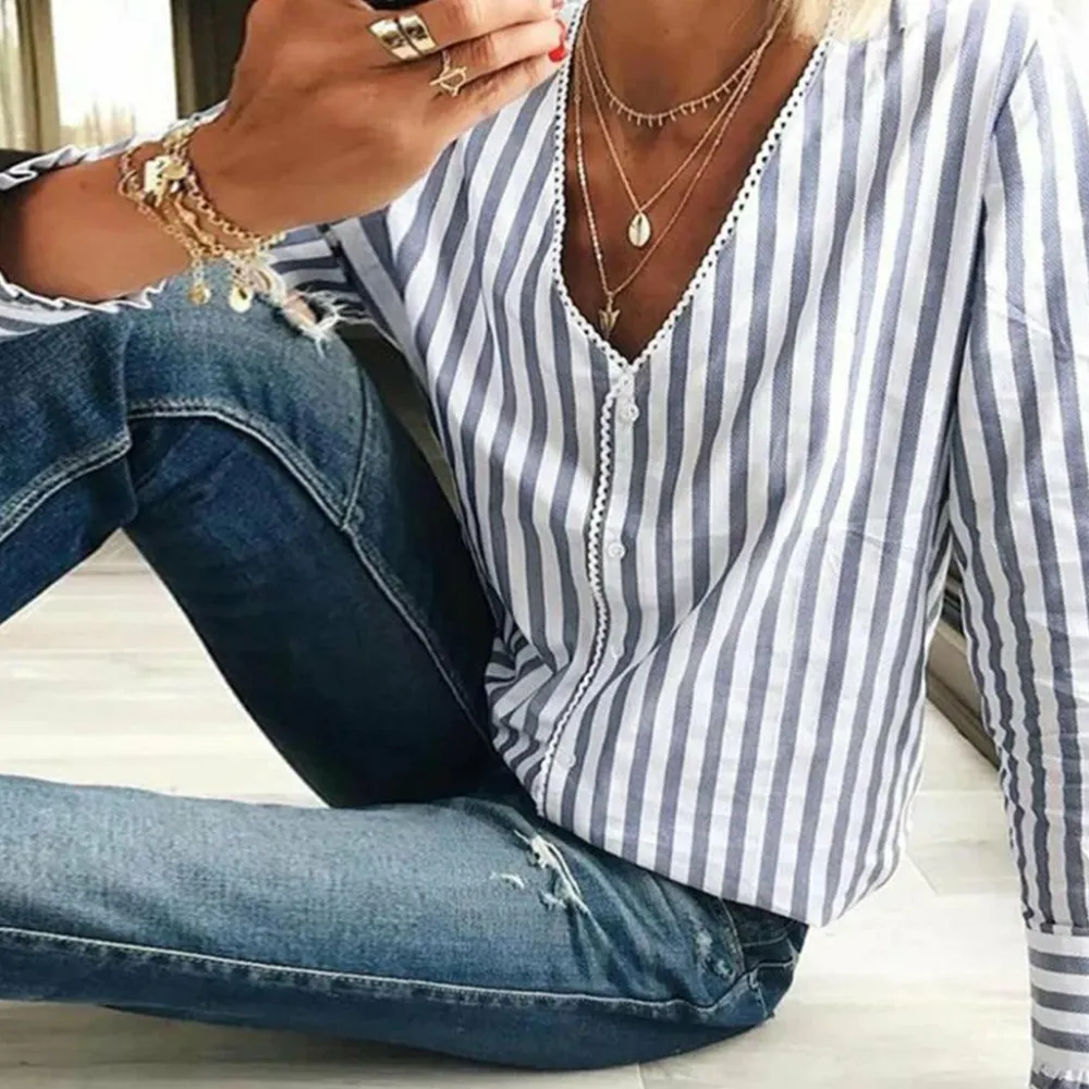 Herontdek de ontspannen elegantie met onze Casual Blouse met Lange Mouwen, die een perfecte aanvulling is op je dagelijkse outfit. Het tijdloze streeppatroon zorgt voor een elegant en stijlvol ontwerp dat je look voor elke gelegenheid kan verbeteren.
