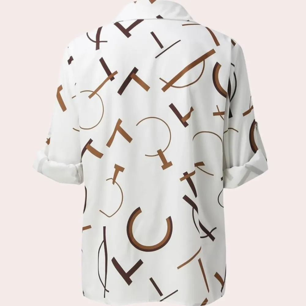 Laat je stijl stralen met de Freida Chic damesblouse, een elegante en moderne toevoeging aan je garderobe. Met lange mouwen en een uniek grafisch patroon biedt deze blouse een verfijnde esthetiek die ideaal is voor zowel dagelijkse kantooroutfits als speciale gelegenheden. Combineer charme met comfort en laat elke outfit opvallen.