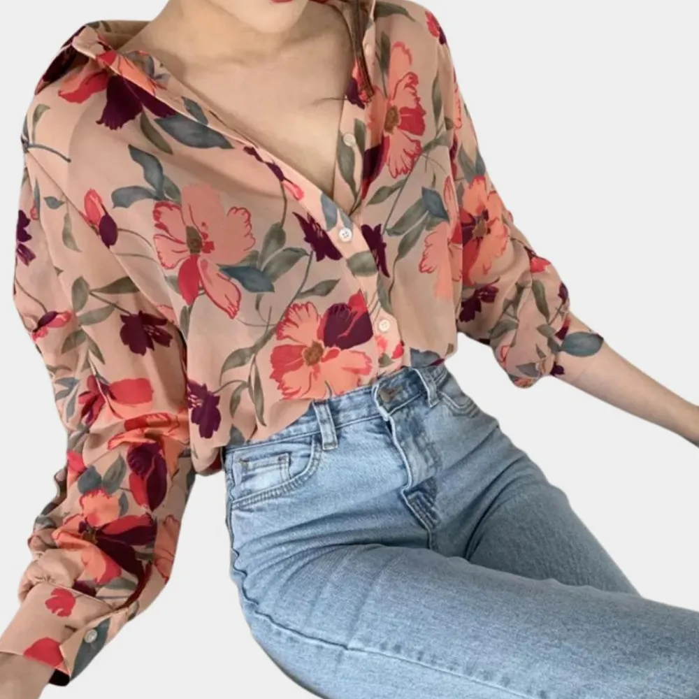 De Ibbie Gebloemde damesblouse is een tijdloos stuk voor je herfstgarderobe. Met zijn losse snit en elegante V-hals is hij perfect voor veelzijdige looks, of je hem nu op kantoor draagt of op een bijeenkomst met vriendinnen.