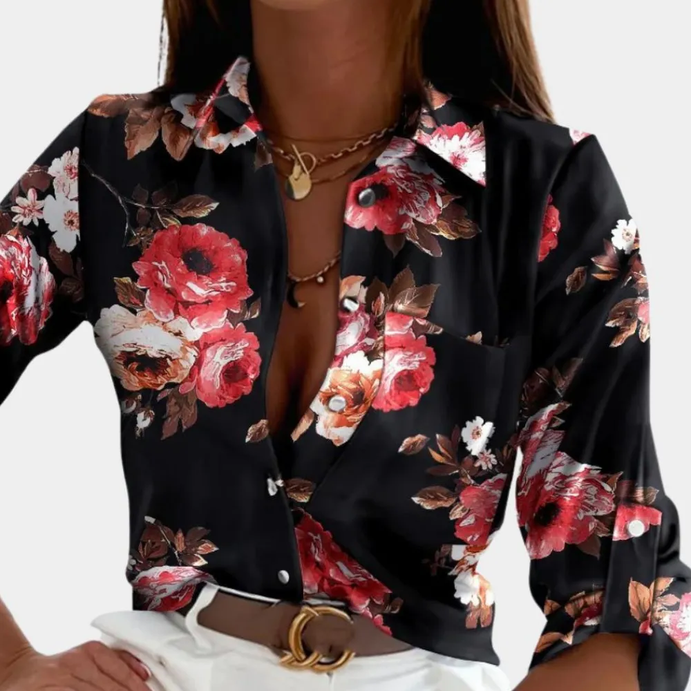 De blouse heeft een tijdloos en veelzijdig ontwerp dat goed te combineren is met verschillende kledingstijlen, van casual tot formeel. De omgeslagen kraag geeft het een gepolijste look die perfect is voor naar kantoor of een avondje uit, terwijl het comfortabele en ademende materiaal je de hele dag comfortabel houdt.