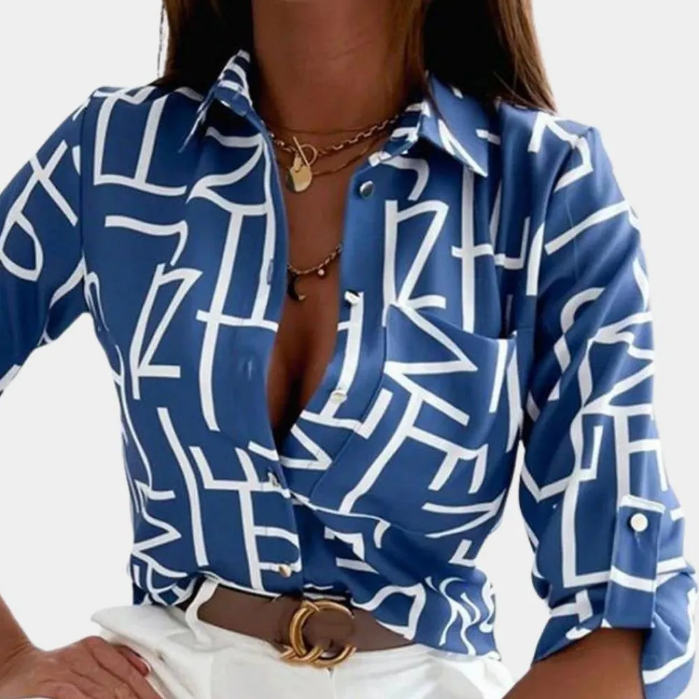 Onze Octavie Stijlvolle damesblouse is de perfecte mix van verfijning en stijl. Hij is gemaakt van hoogwaardige materialen en heeft een klassieke omgeslagen kraag die een vleugje verfijning toevoegt aan elke outfit.
