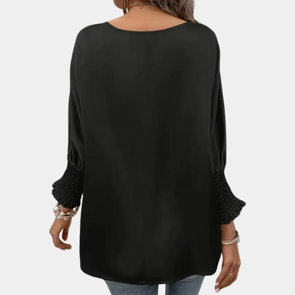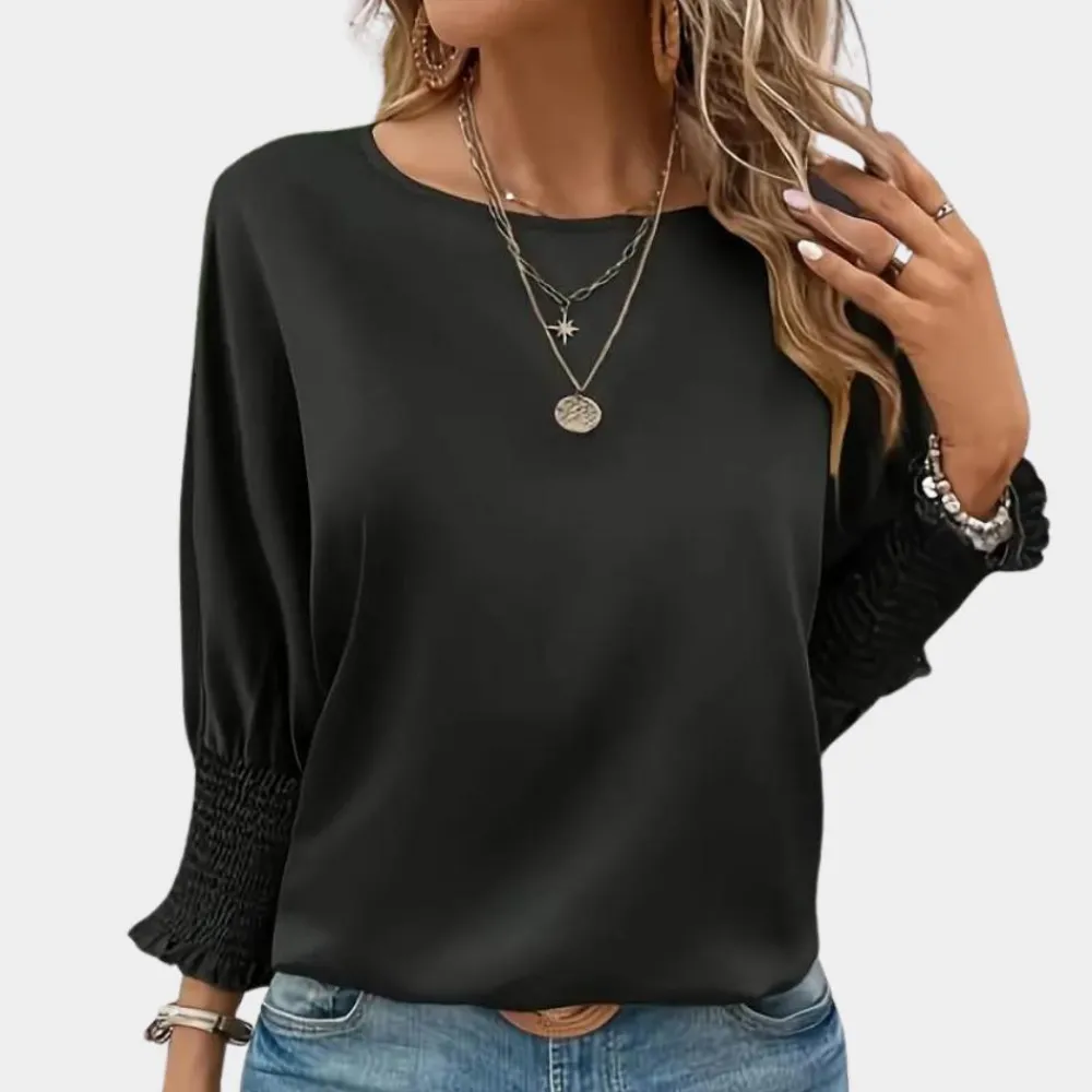 Onze Zuzanka Eenvoudige damesblouse met ronde hals heeft een mooie vorm die je rondingen benadrukt en je een vrouwelijke uitstraling geeft.