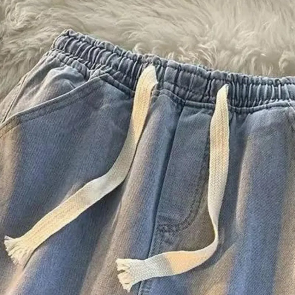 Het stevige denimmateriaal gaat lang mee, terwijl het relaxte ontwerp optimaal comfort biedt voor verschillende activiteiten. Of je nu boodschappen doet, vrienden ontmoet of thuis ontspant, deze broek biedt de ideale combinatie van functionaliteit en mode.