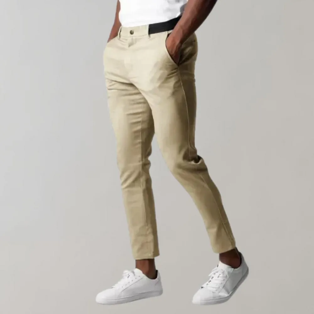 Ontdek de Leonardo chino broek voor heren in de kleuren zwart, grijs, khaki en blauw – de perfecte keuze voor elke gelegenheid!
