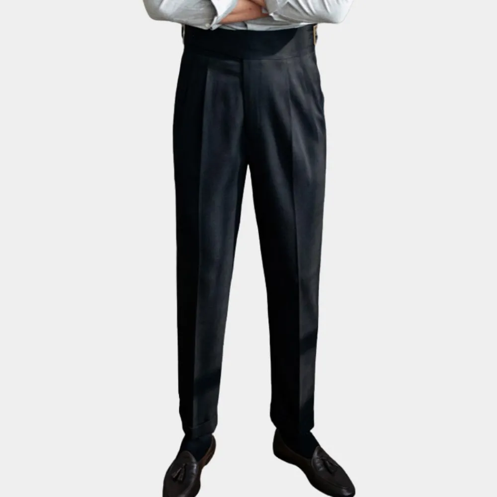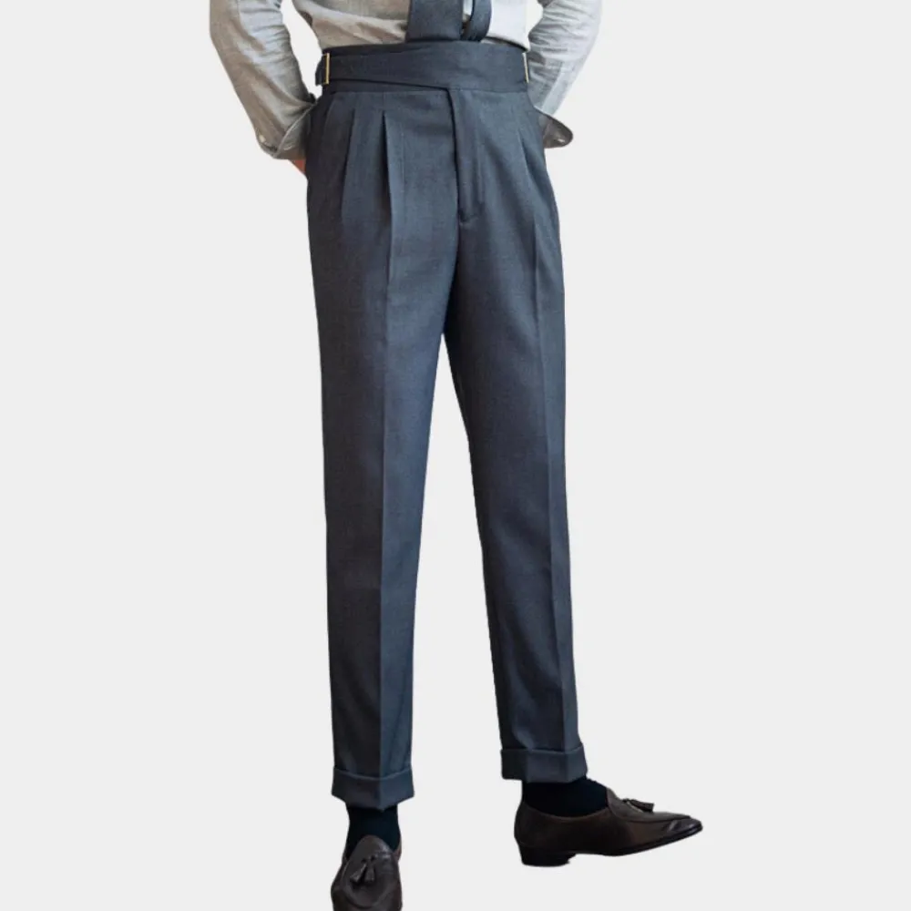 - Klassieke herenbroek met gespen: Deze broek flatteert verschillende lichaamstypes en biedt bewegingsvrijheid.