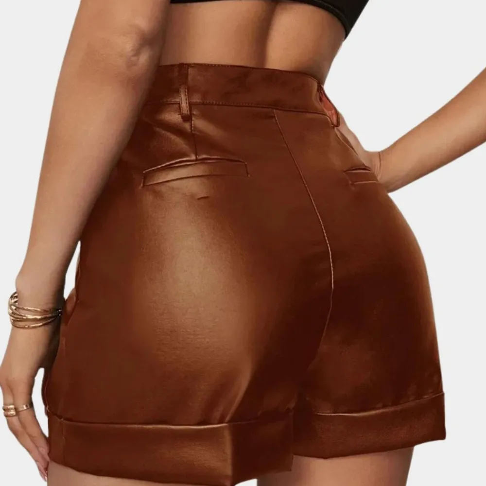 Deze Daisy Stijlvolle damesshorts is perfect voor een avondje uit of in combinatie met een panty ideaal voor dagelijks gebruik! De kunstlederen shorts hebben een hoge taille en diepe voor- en achterzakken. De shorts hebben riemlussen zodat je er ook een stijlvolle riem bij kunt dragen. Super makkelijk te combineren met een crop top of blouse. Verkrijgbaar in rood, zwart en bruin.