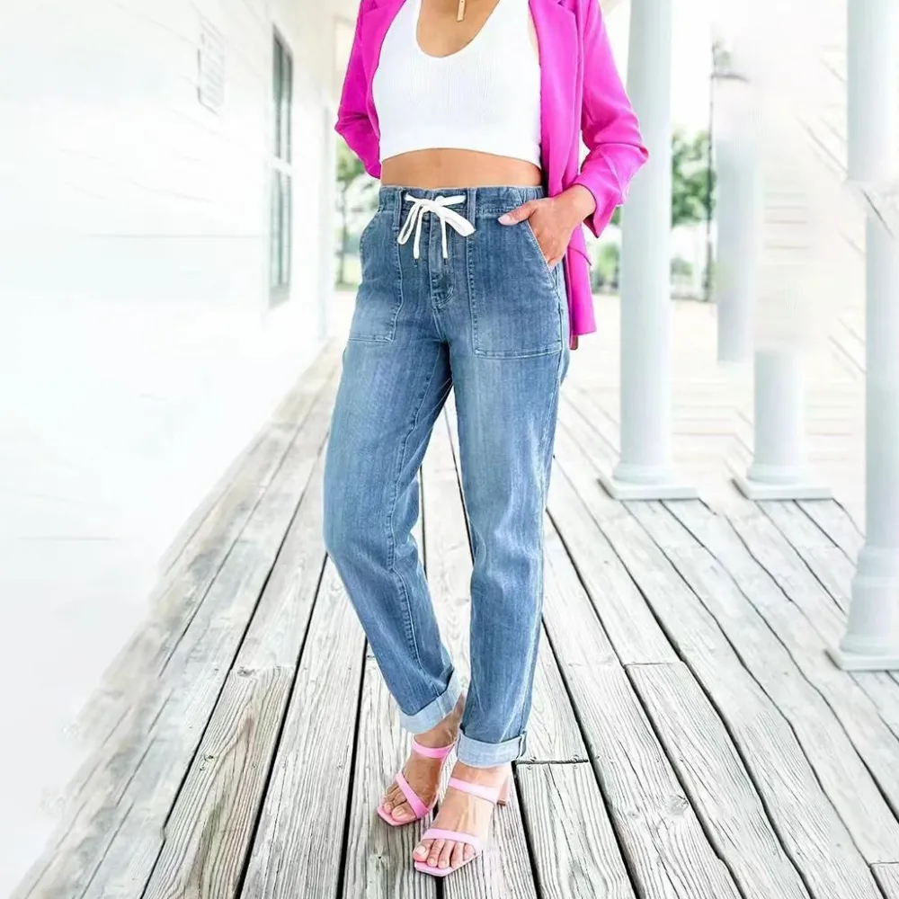 Ervaar een ongekend niveau van comfort met onze nieuwe LACEY Rekbaar joggerbroek, deskundig ontworpen om alle regels van traditionele denim te breken. Voel de exquise aanraking van de boterzachte stof die duurzaam is, zodat je een kledingstuk hebt dat lang meegaat. De meest krasse jeans die je ooit zult dragen, deze joggers brengen comfort naar een heel nieuw niveau!