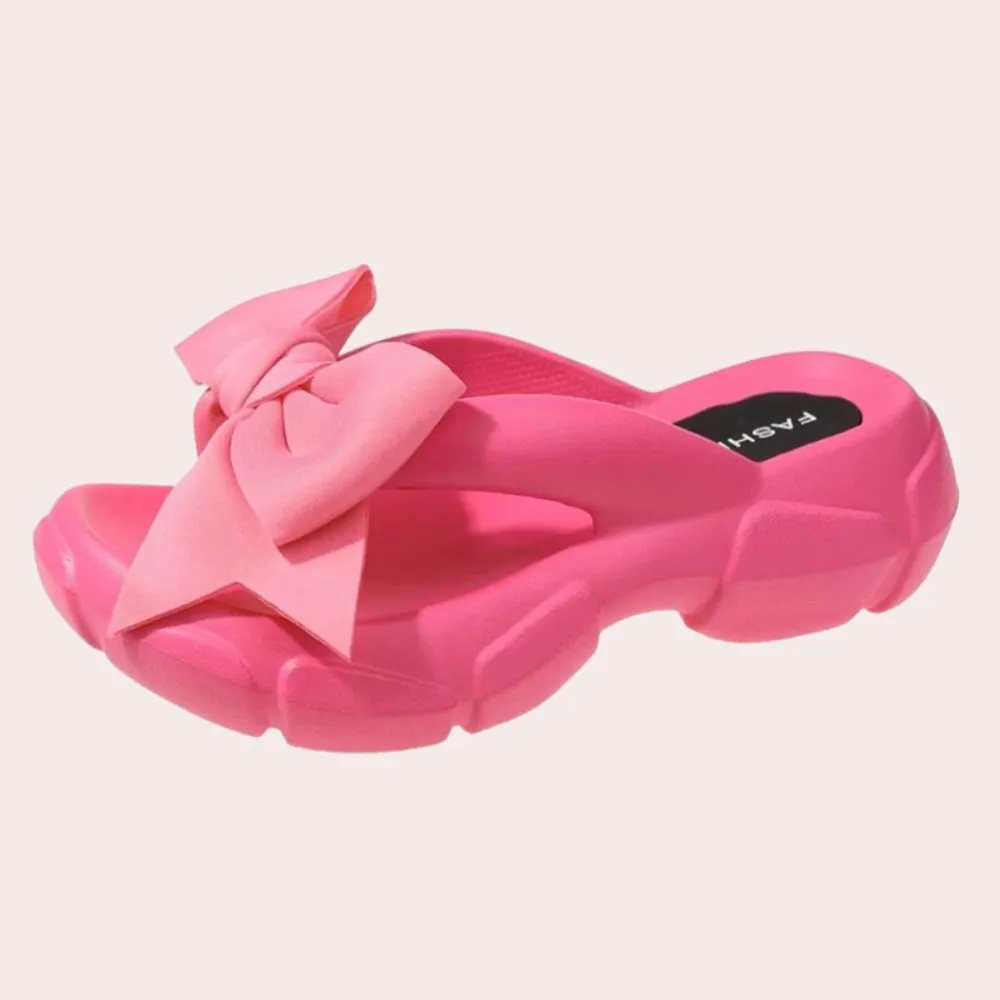 Begin de zomer met onze slippers en combineer stijl en functionaliteit. Deze chique slippers zijn versierd met een charmante strik die een modieuze draai aan je strandkleding geeft. De plateauzool met sleehak verfraait niet alleen je look, maar zorgt ook voor comfort de hele dag door. Ze zijn ideaal voor stranddagen of casual uitjes en zijn het toppunt van zomerse stijl.