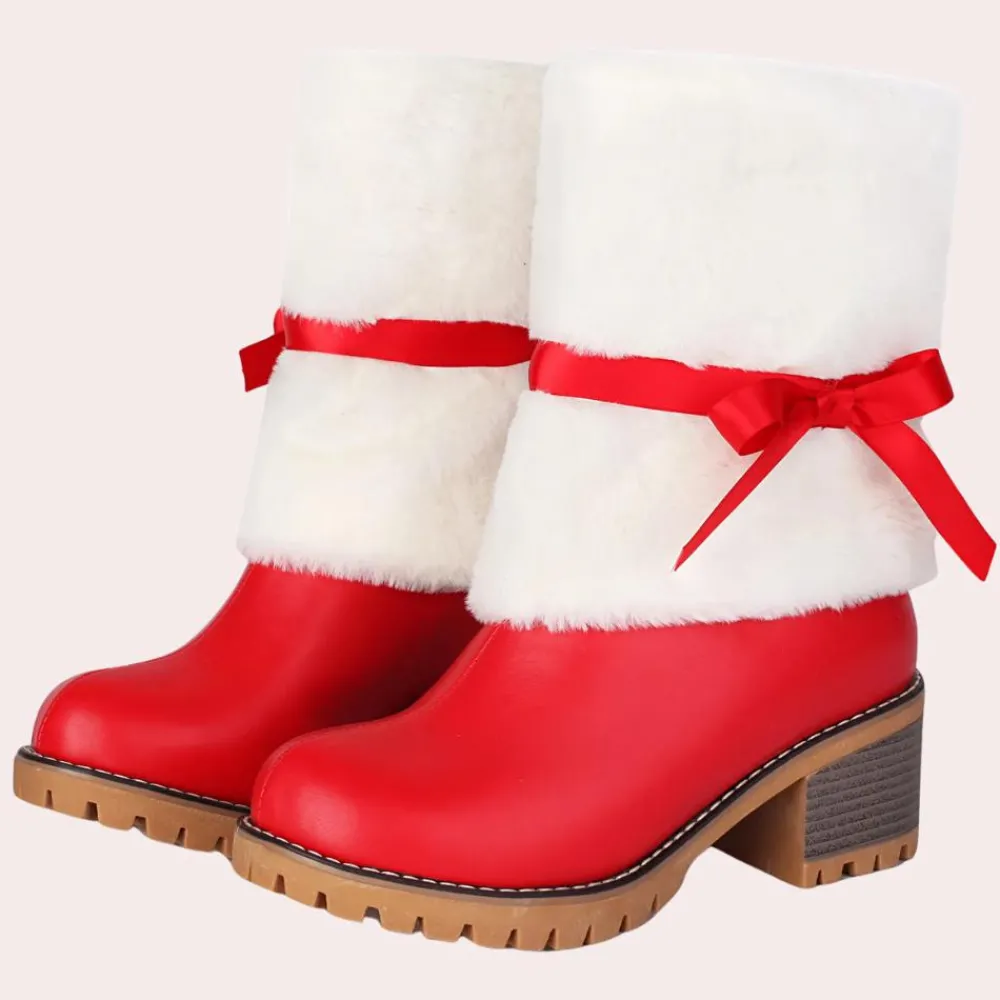 Feestelijke sfeer: Deze laarzen zijn versierd met kerstachtige details die de vreugde van het seizoen uitstralen.