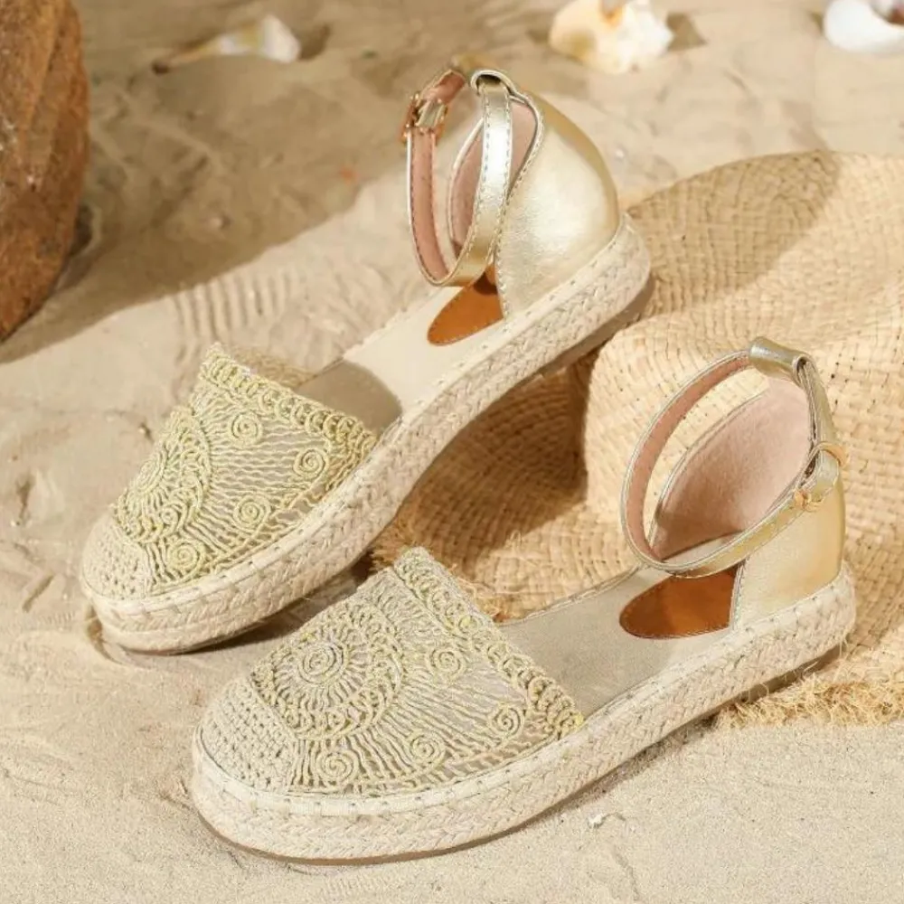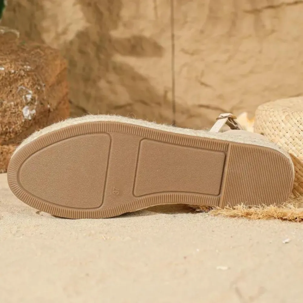De gevlochten jute zool voegt een vleugje casual elegantie toe, waardoor ze perfect zijn voor zowel een ontspannen dag op het strand als een actieve stadsverkenning. Het gewatteerde voetbed en het stevige enkelbandje zorgen voor een perfecte pasvorm en ondersteuning. Geniet van de zomer in stijl met de Fleur Elegante Dames Sandalen.