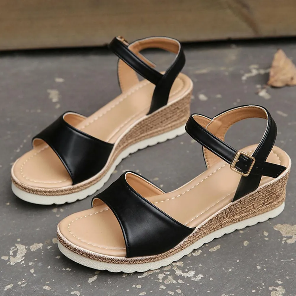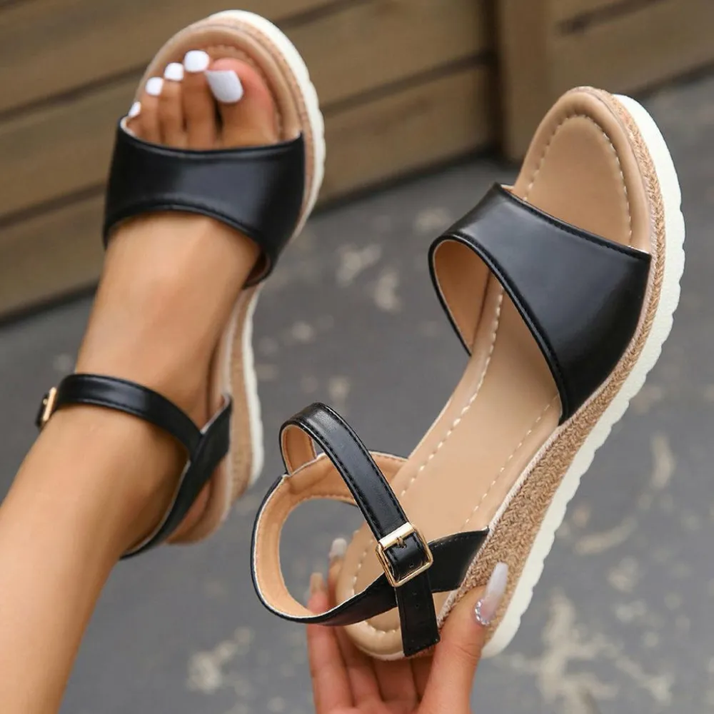 Stap in een wereld van moeiteloze elegantie met sandalen die moeiteloos elk zomers ensemble opwaarderen. Deze zorgvuldig vervaardigde sandalen maken gegarandeerd een statement waar je ook gaat. KIANA Casual sleehak sandalen met enkelgespen bieden ongeëvenaard comfort voor je voeten en brengen puur geluk bij elke stap.