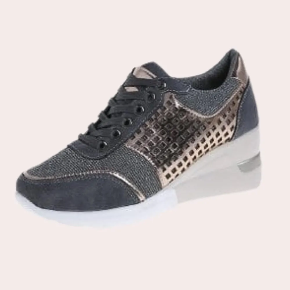 Verhoog elke stap met onze Xandra Stijlvolle sneakers met sleehakken, ontworpen voor de vrouw van vandaag. Deze hoge sneakers zijn gemaakt van het fijnste microvezelmateriaal en combineren moeiteloos stijl met comfort. Het ademende materiaal houdt je voeten fris en ontspannen, terwijl de hoge hak een vleugje verfijning toevoegt aan je outfit.
