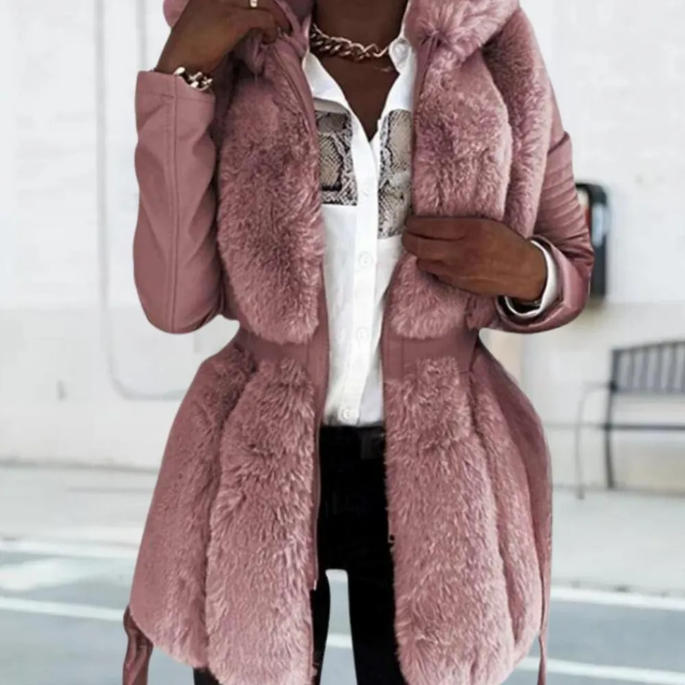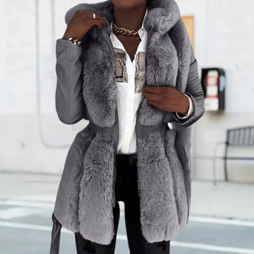 Ondanks de losse pasvorm, benadrukt de Alissa Luxe Jas met Kap voor dames nog steeds je figuur voor een verfijnde look.