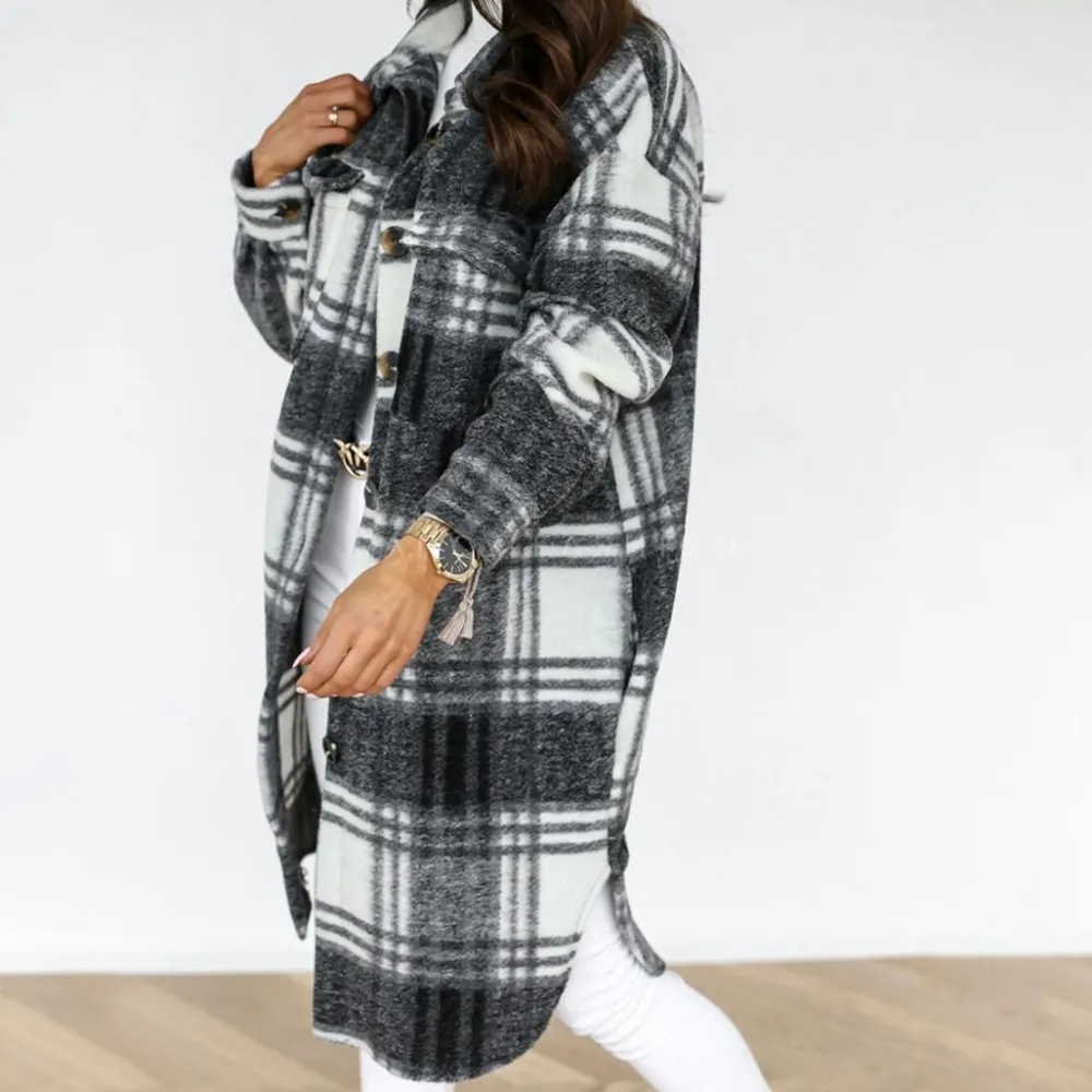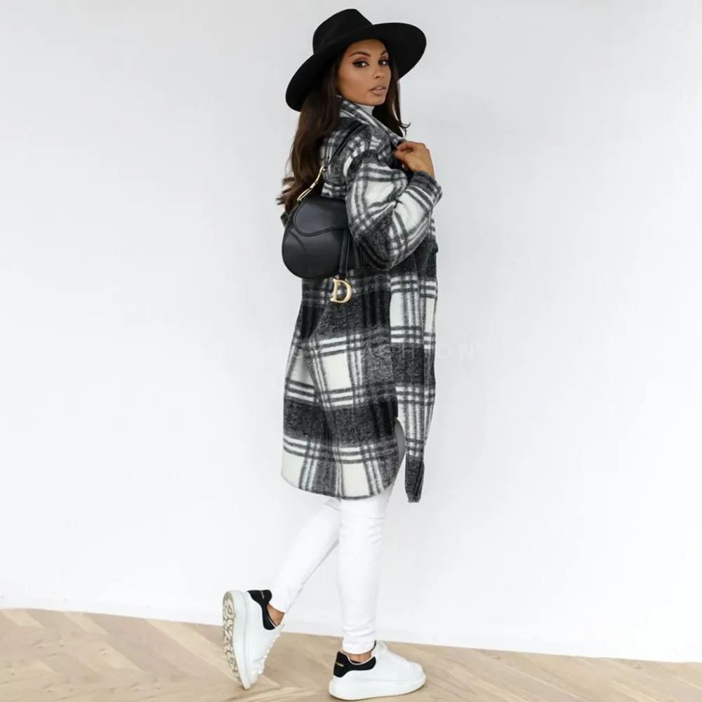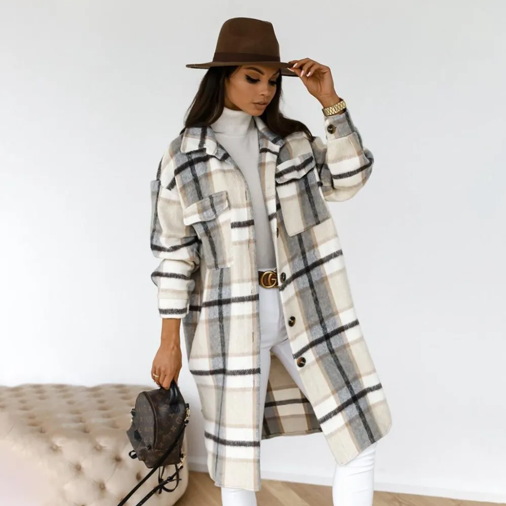 Wil je voor een chique en casual kiezen met onze geruite lange jas voor dames?