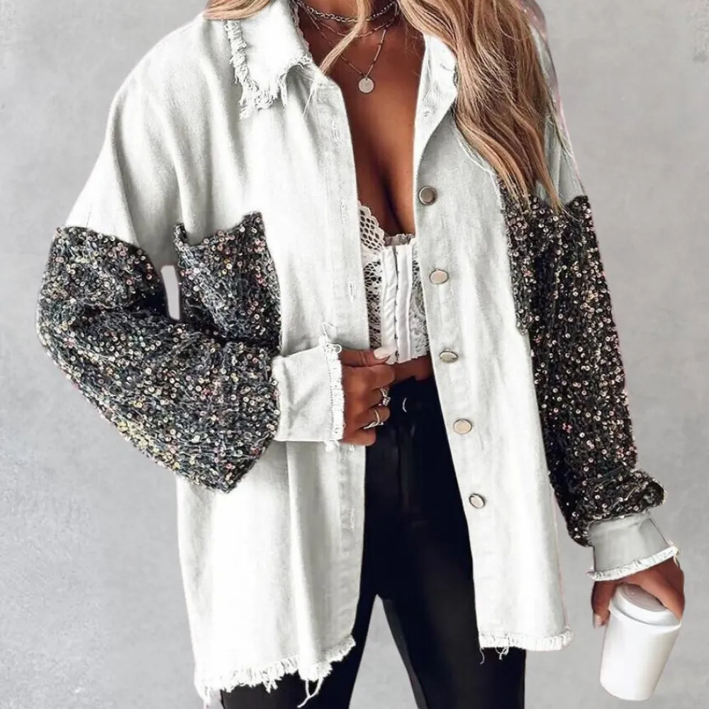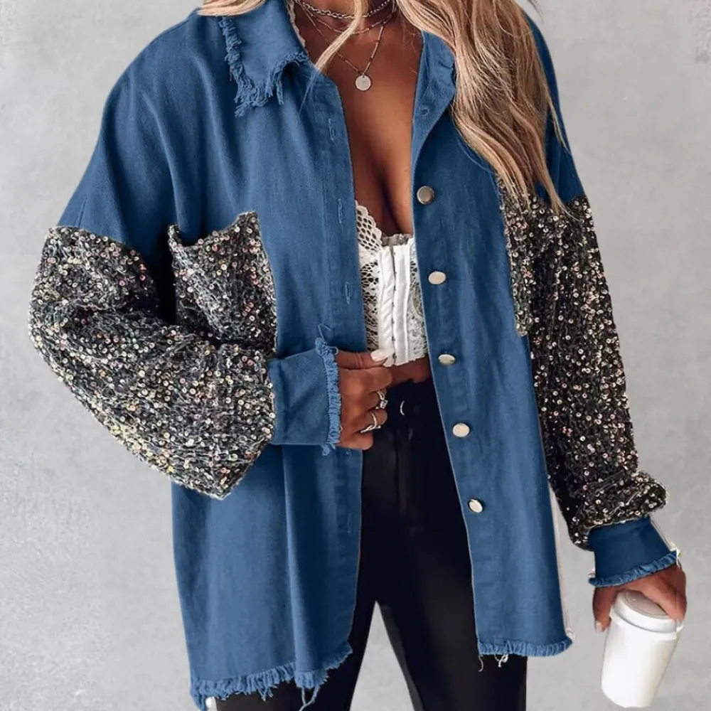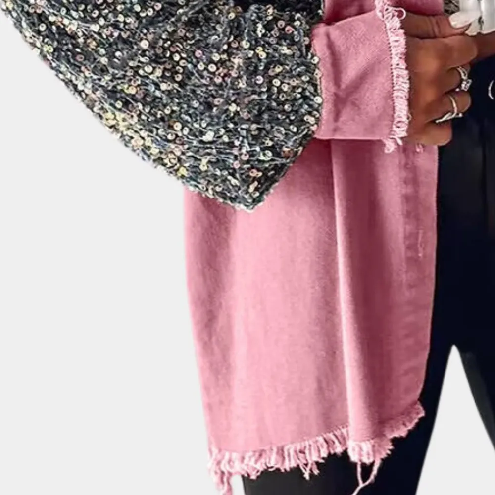 Verhoog je garderobe met de Delilah Pailletten Jacket en laat je stijl schitteren, waar je ook gaat!