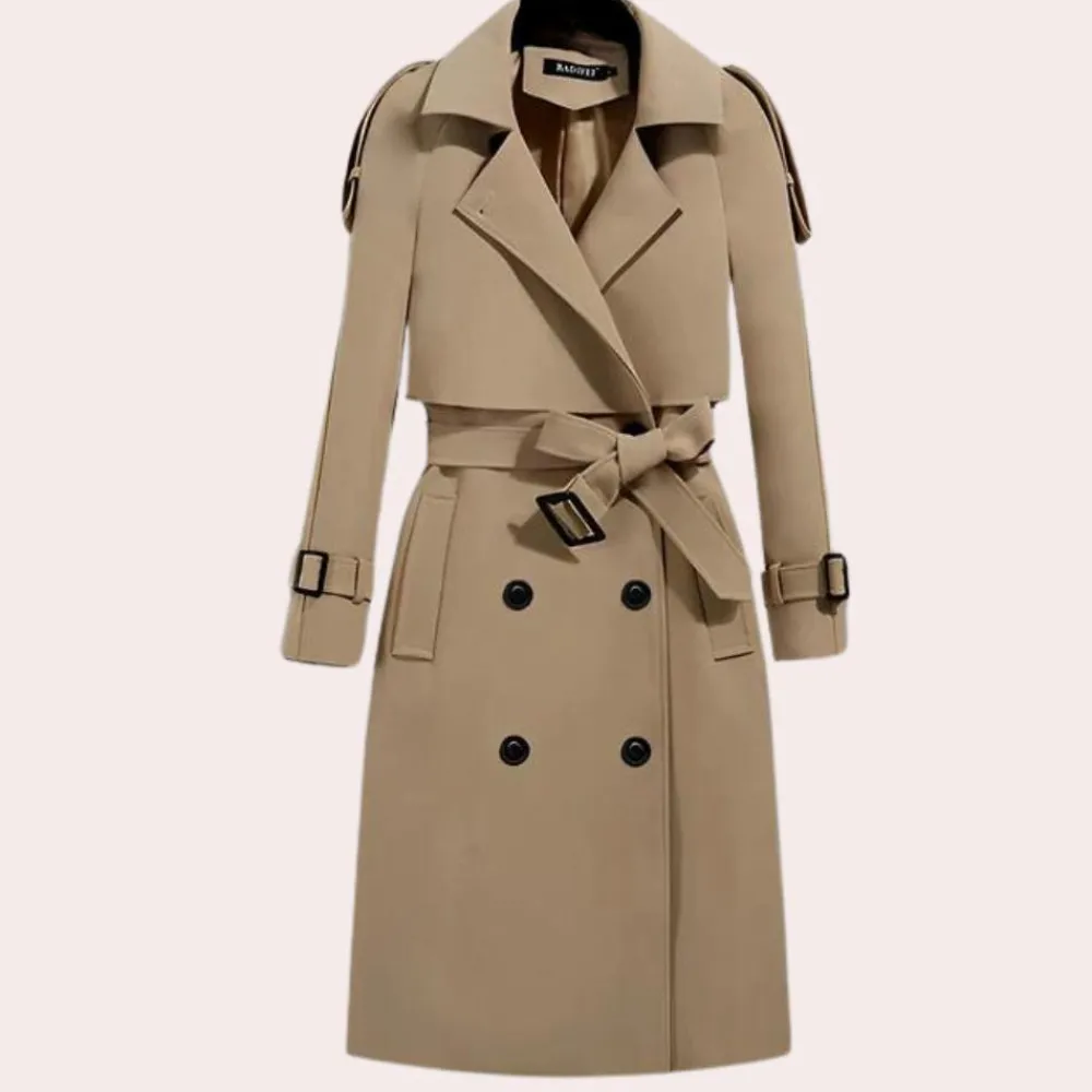 Onze limited edition Elegante lange trenchcoat voor dames is zorgvuldig gemaakt van polyester van hoge kwaliteit. De belangrijkste ontwerpelementen zijn een kenmerkende geknoopte achterkant, opvallende mouwen met gespmanchetten en een uniek ‘Out of Sync’-handtekeningdetail.