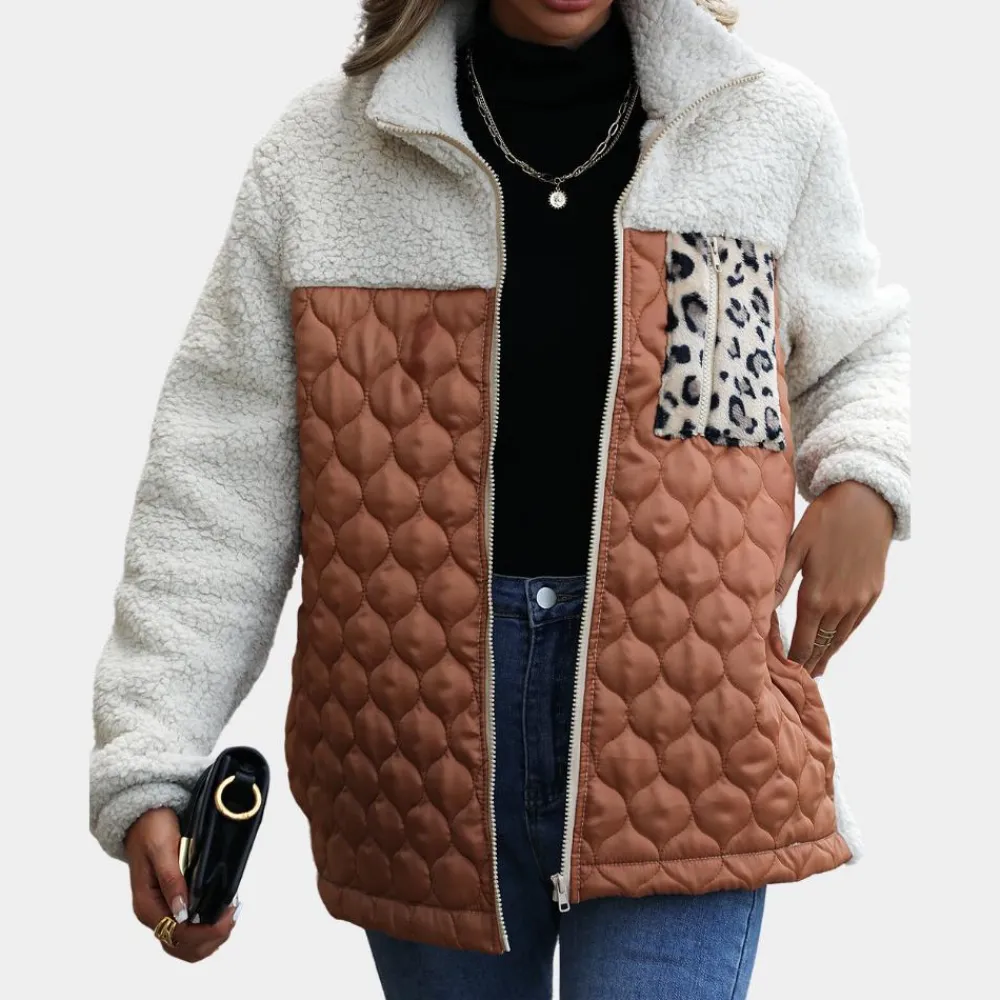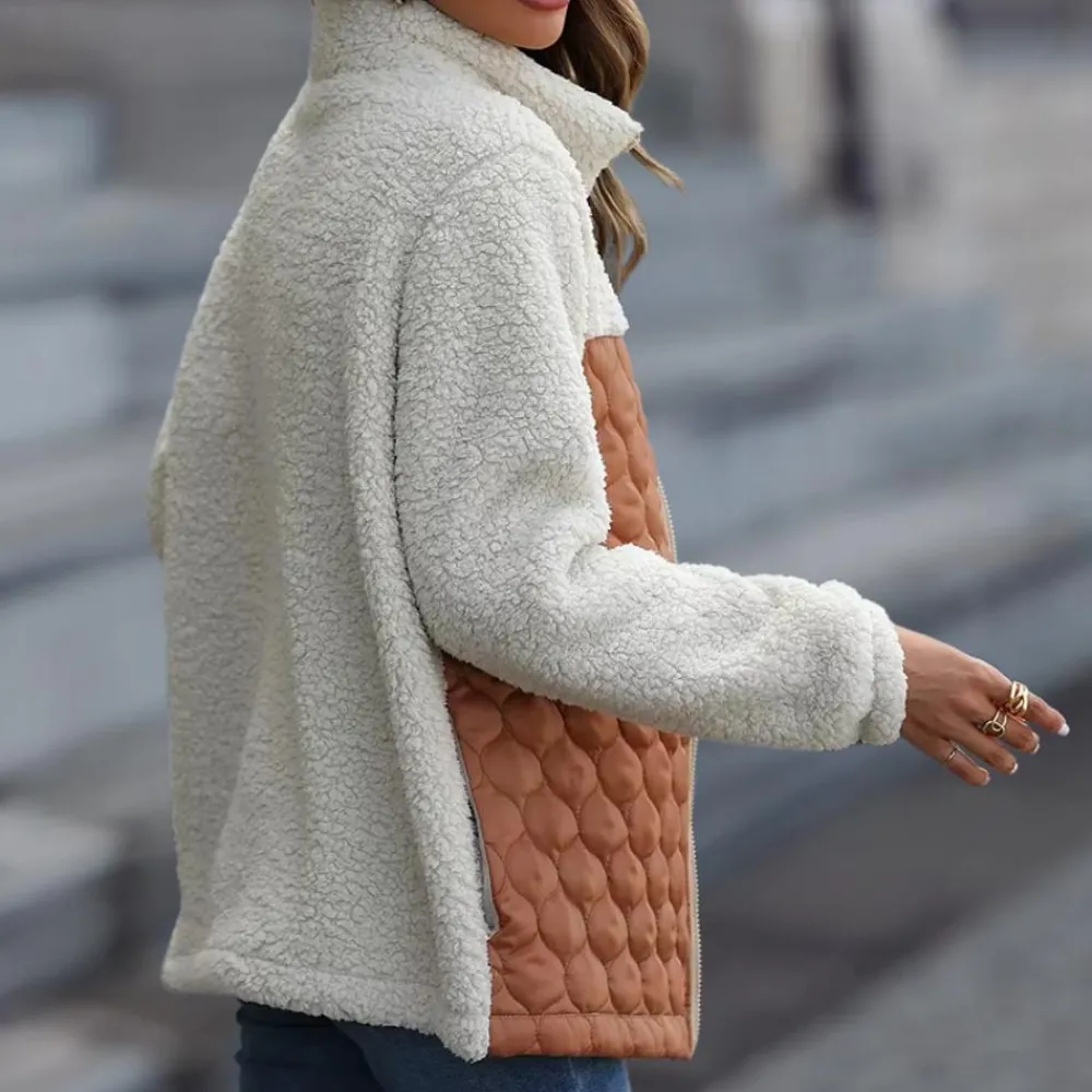 De Estefania Modieuze Plush Jas voor de Elegante Dame biedt zowel warmte als een modieuze look tijdens de koudere maanden. De comfortabele stof en het unieke patchworkdesign maken deze jas perfect voor de wintergarderobe. Met handige zakken en een ritssluiting, en een opstaande kraag die je beschermt tegen de kou, is deze jas geschikt voor de lente, herfst en winter.