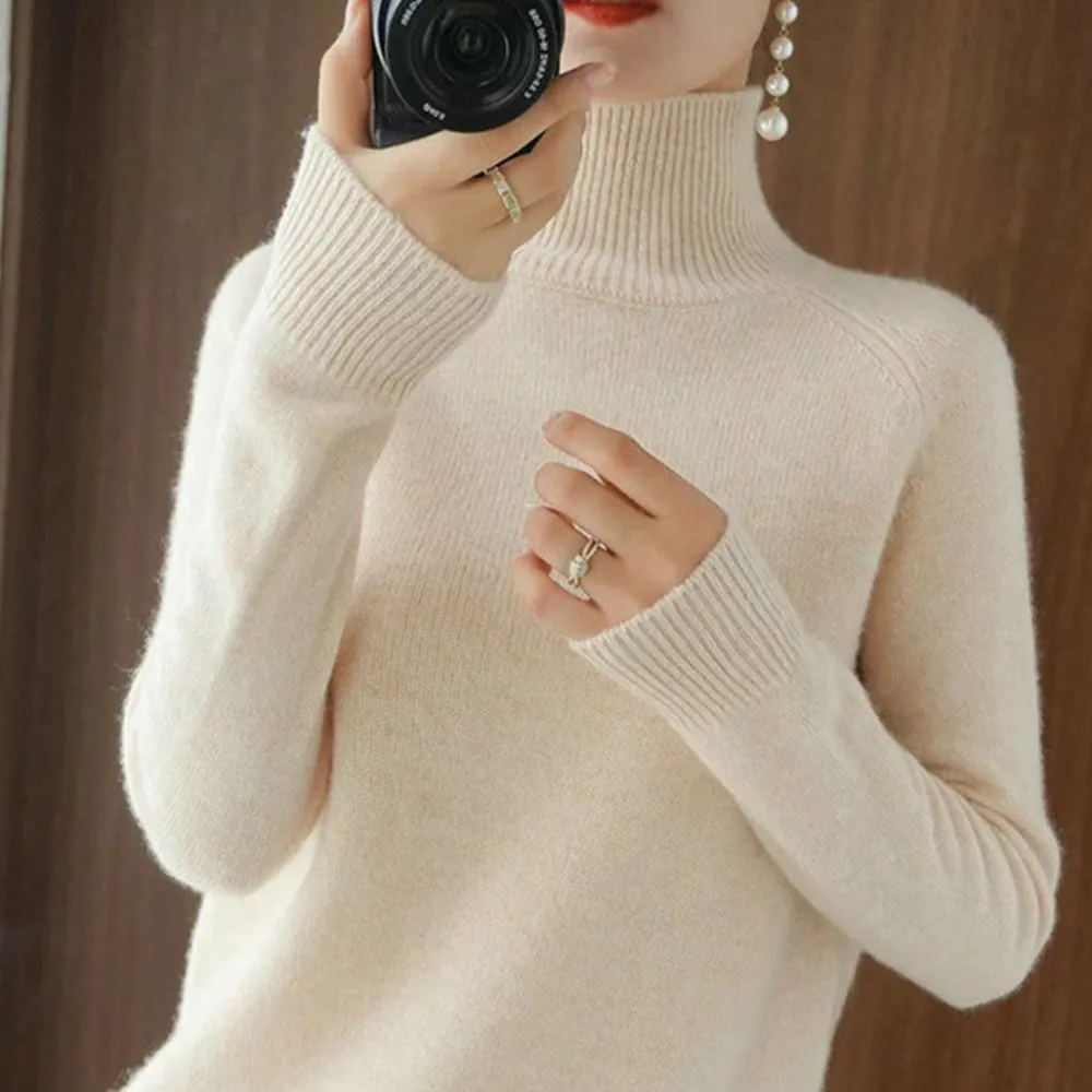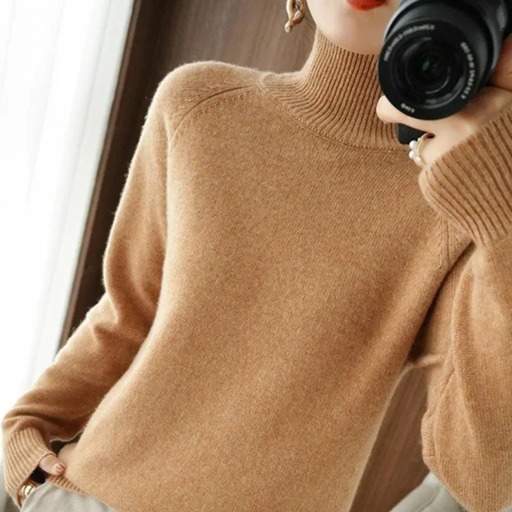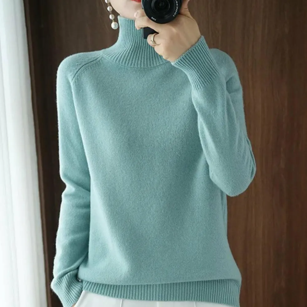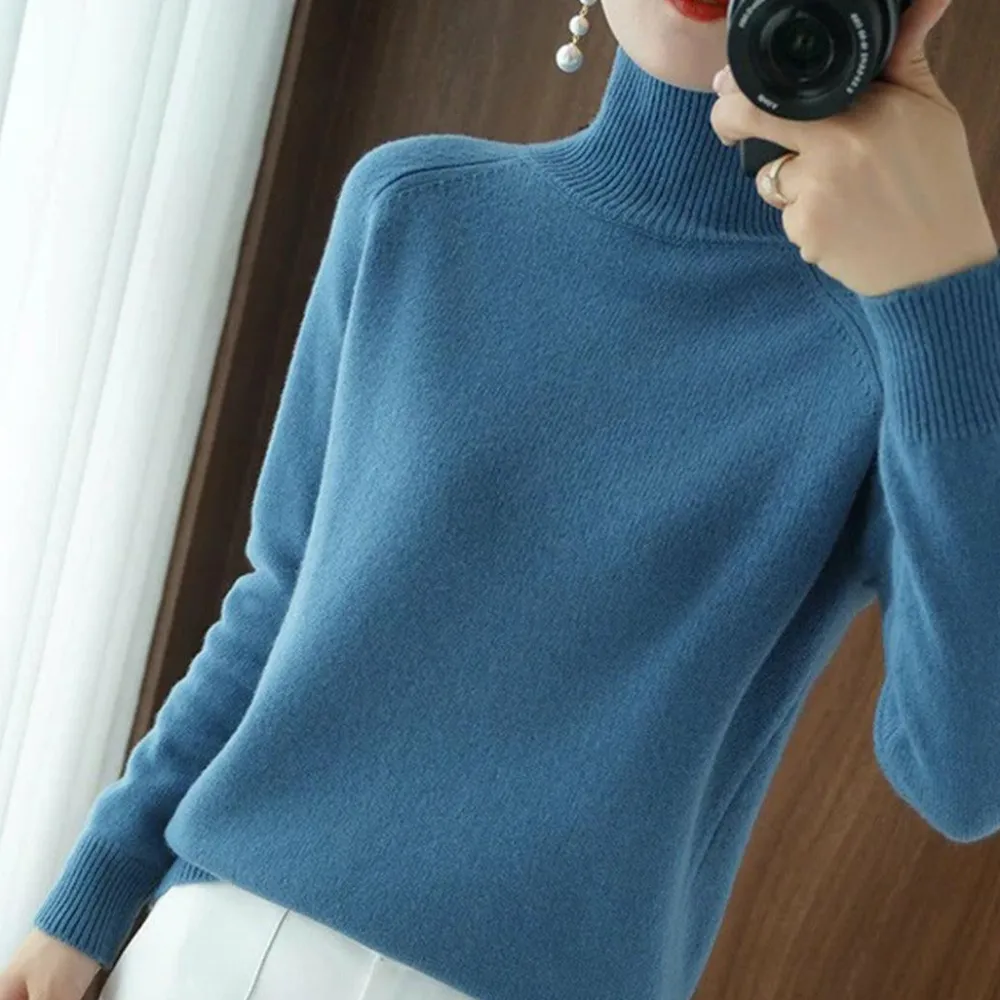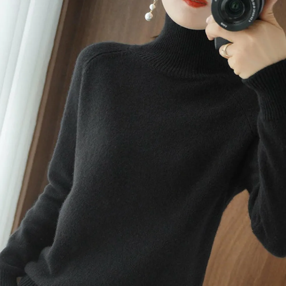 De lange mouwen en hoge hals maken hem perfect voor koeler weer, en het veelzijdige effen kleurenontwerp kan voor beide gedragen worden, afhankelijk van de gelegenheid.