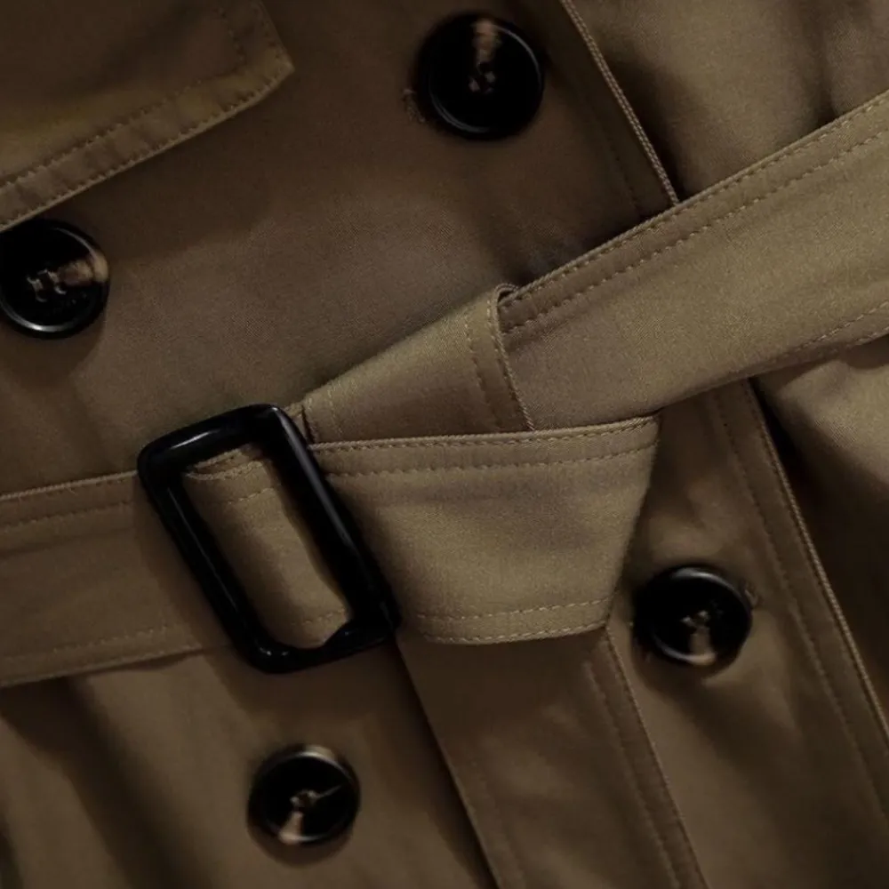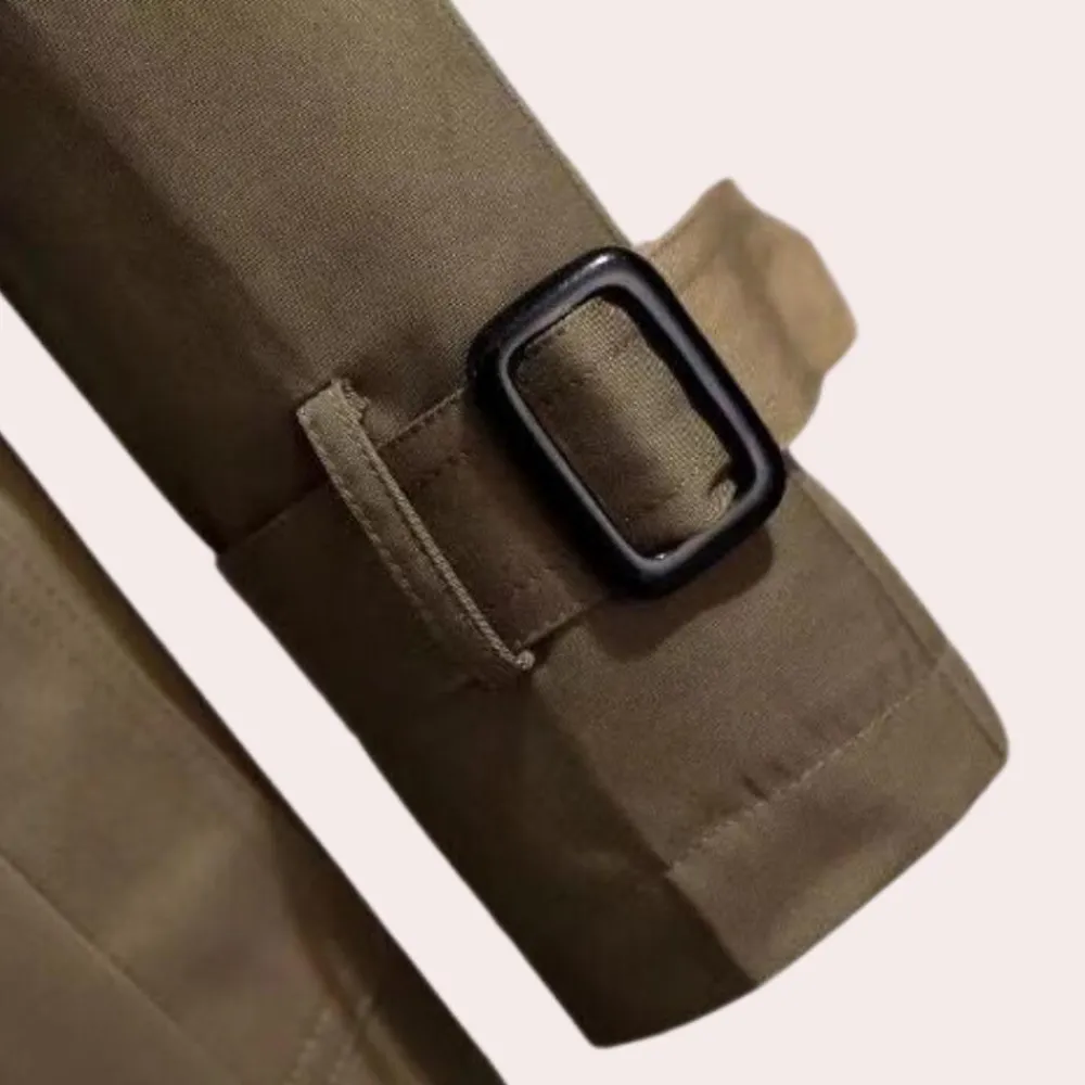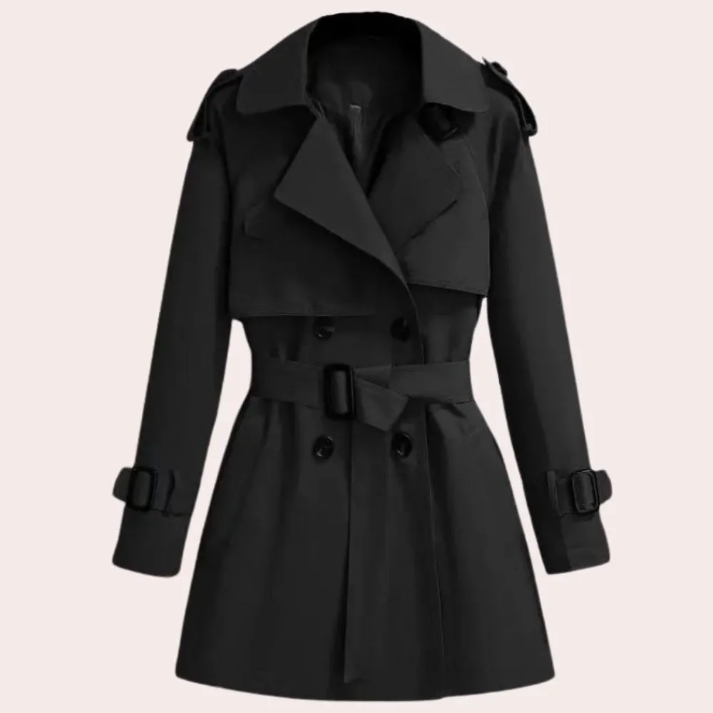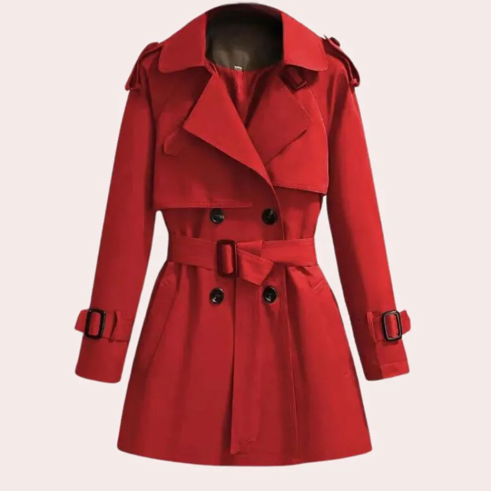 De Apolline Windjack voor dames, met stof bedekte drukknopen, een afneembare riem en een split op de rug, combineert mode en functie perfect. Deze jas van hoge kwaliteit is een must-have voor elke vrouw.