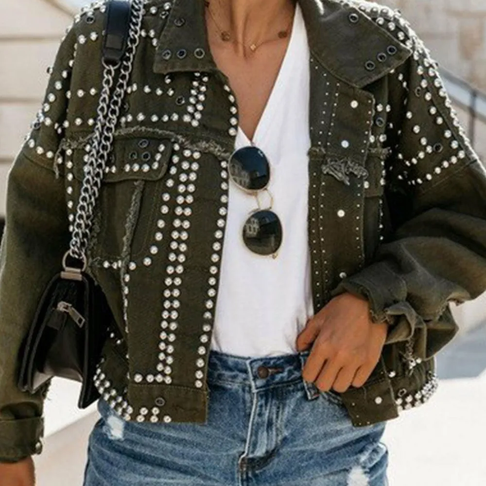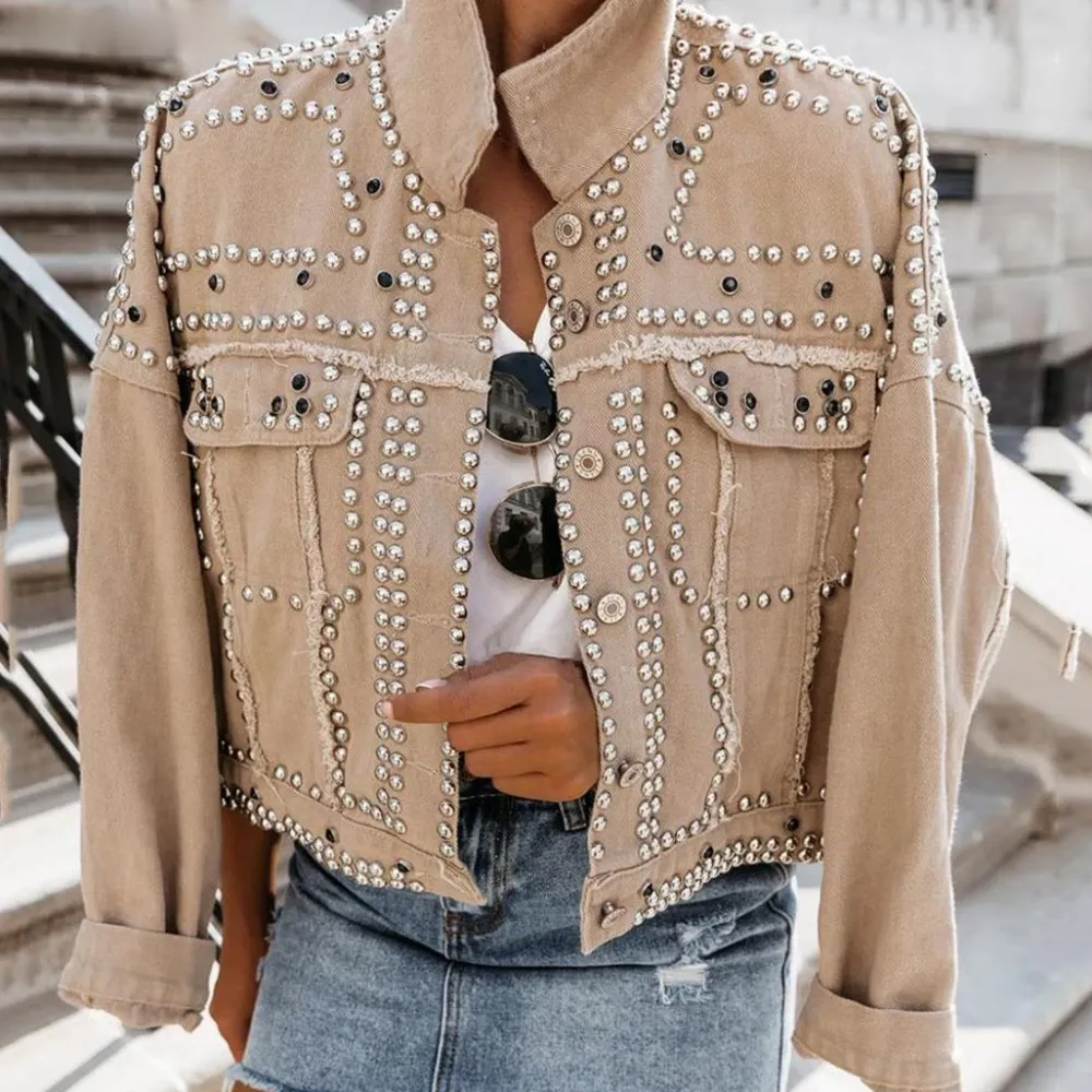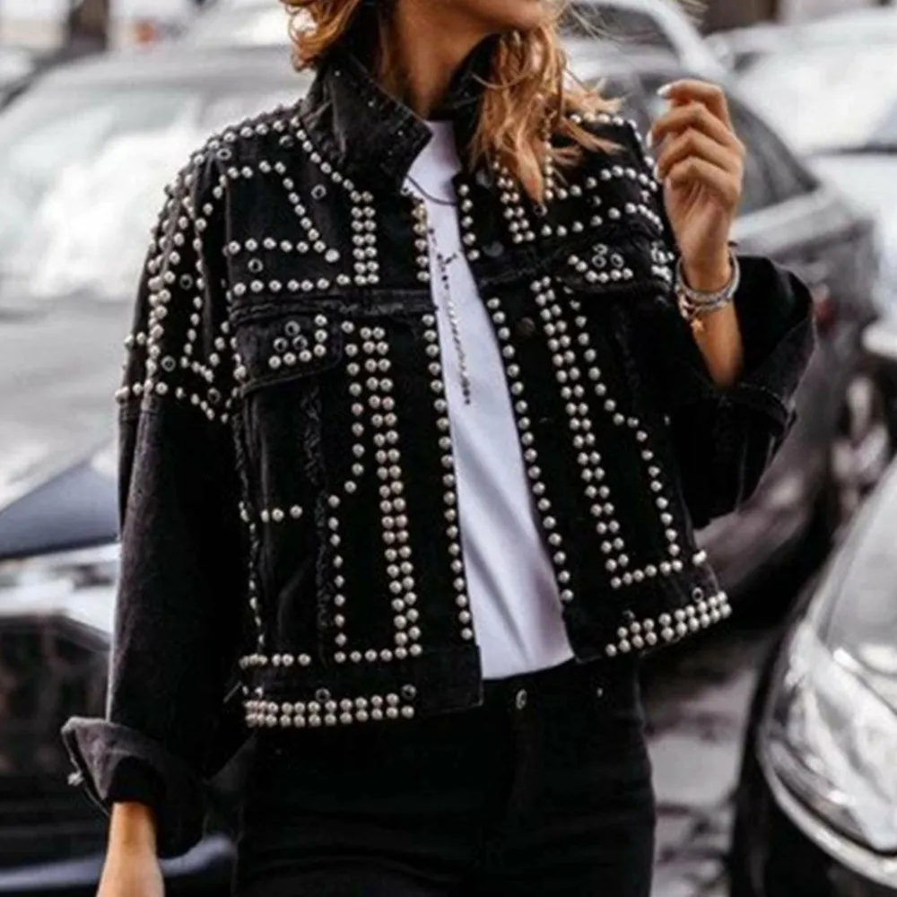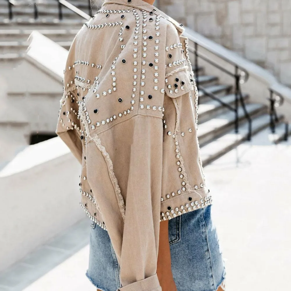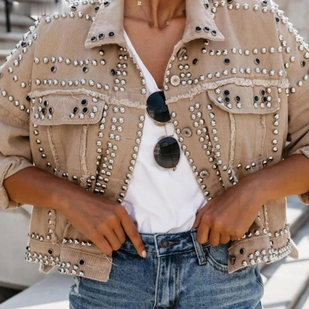 Dit casual denim damesjack met klinknagels is de perfecte top voor jouw individuele look. Gemaakt van eersteklas polyester en met uitneembare voering maakt het een must-have in je garderobe. Een stijlvol compromis tussen stijl en comfort.