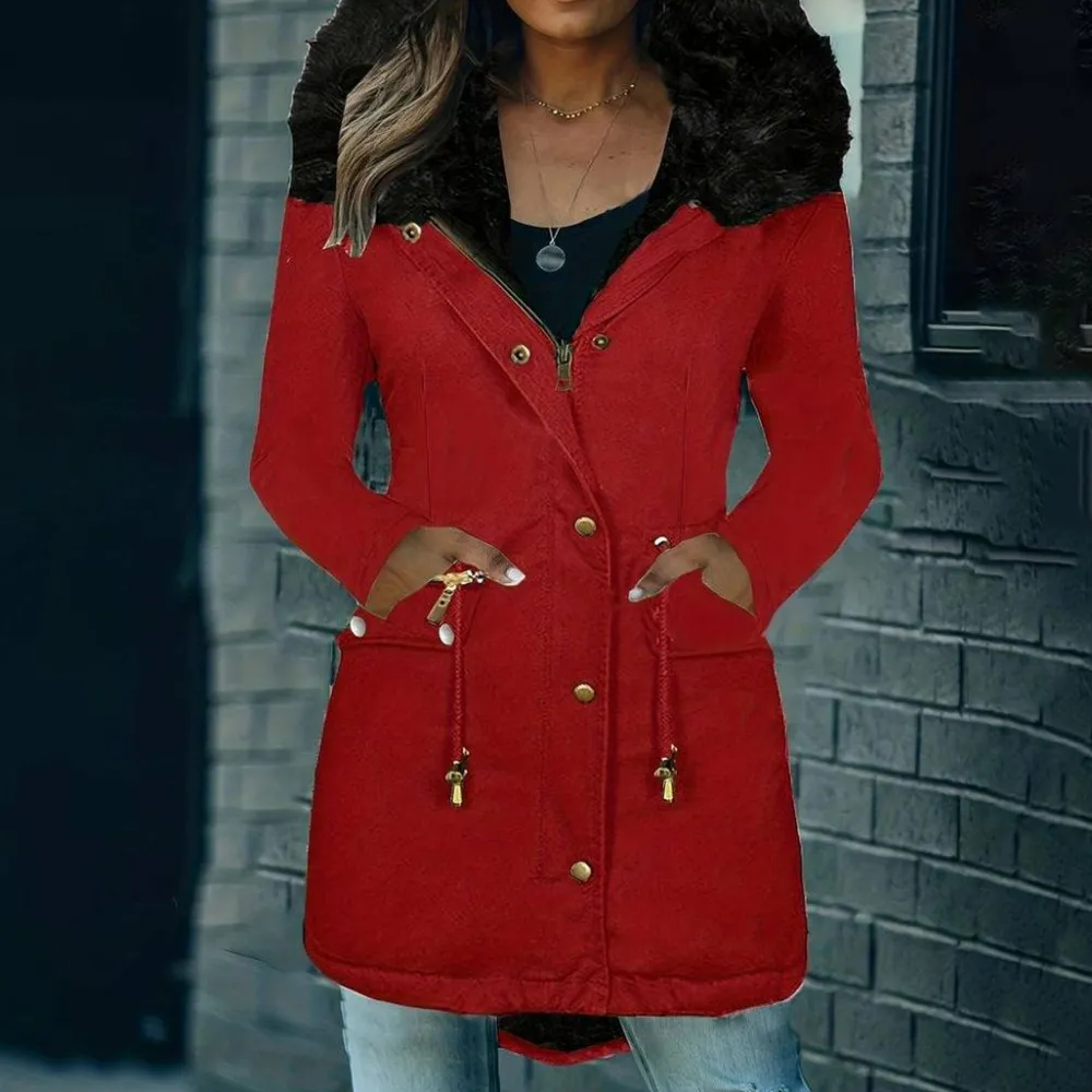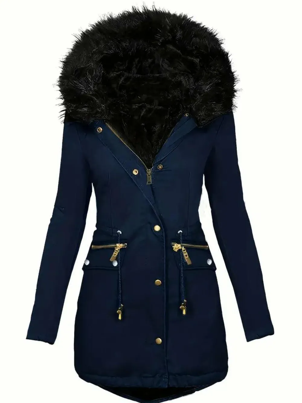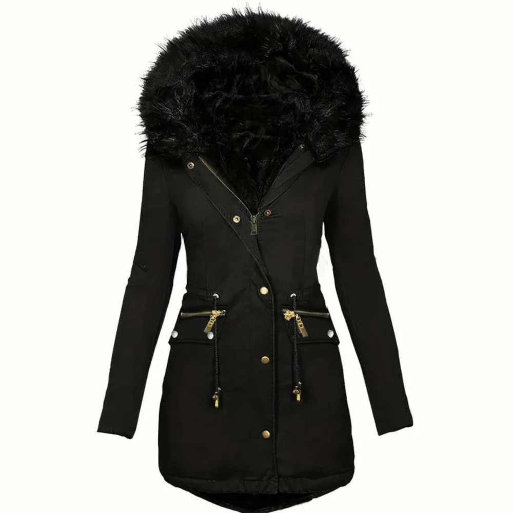 - Stijlvol: Wordt geleverd met een capuchon van imitatiebont en trekkoord voor een trendy en modieuze look