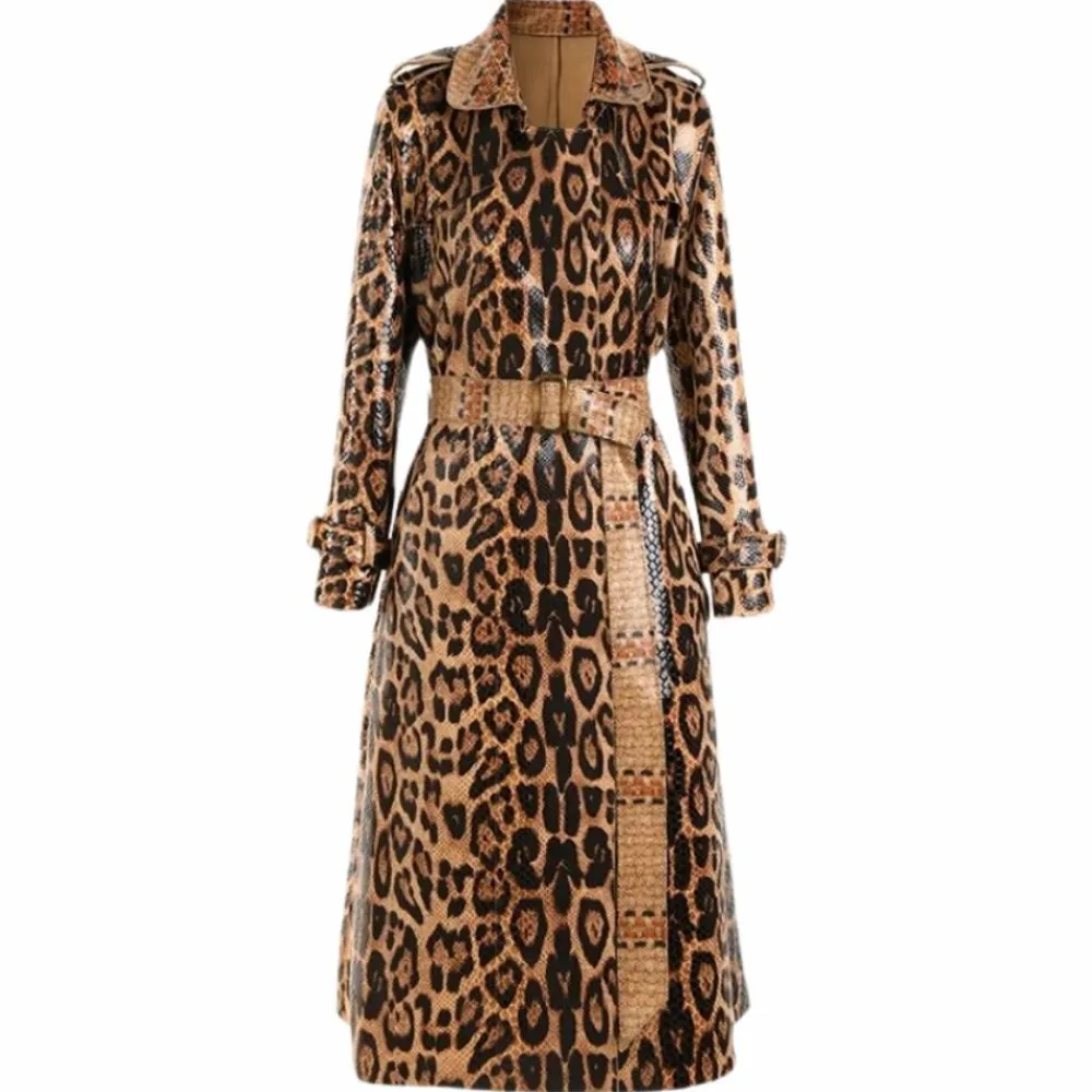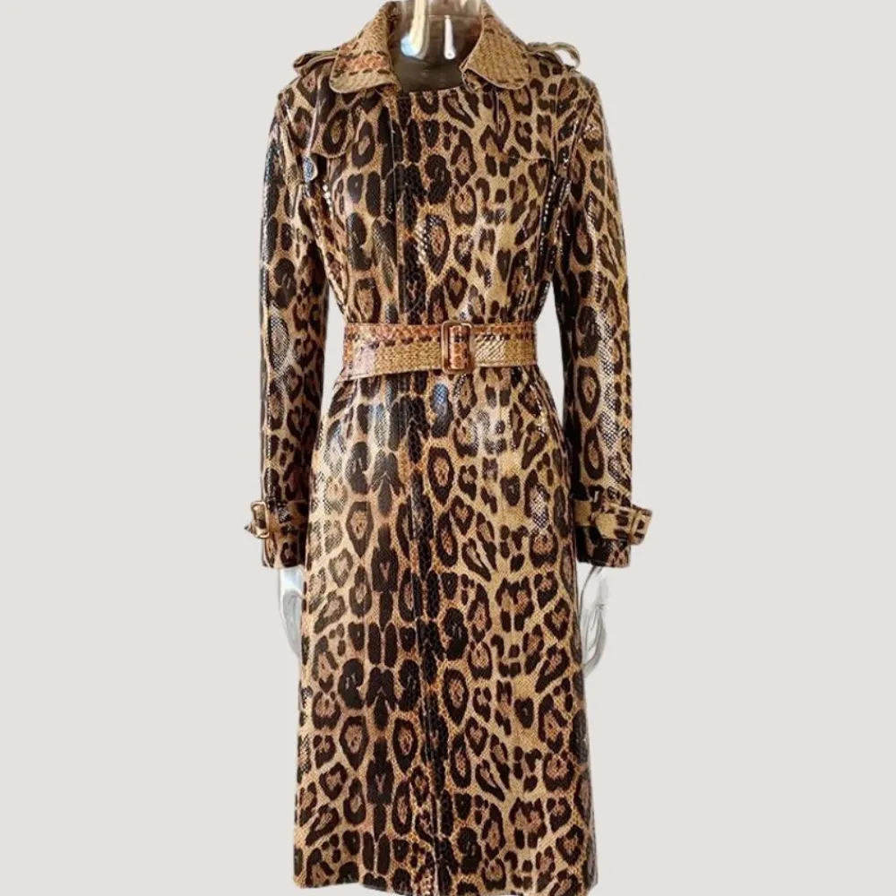 Premium SANNA Elegante trenchcoat voor vrouwen uit onze collectie. Gemaakt van klassiek hoogwaardig veganistisch PU-leer. Het ontwerp past bij diverse stylings.