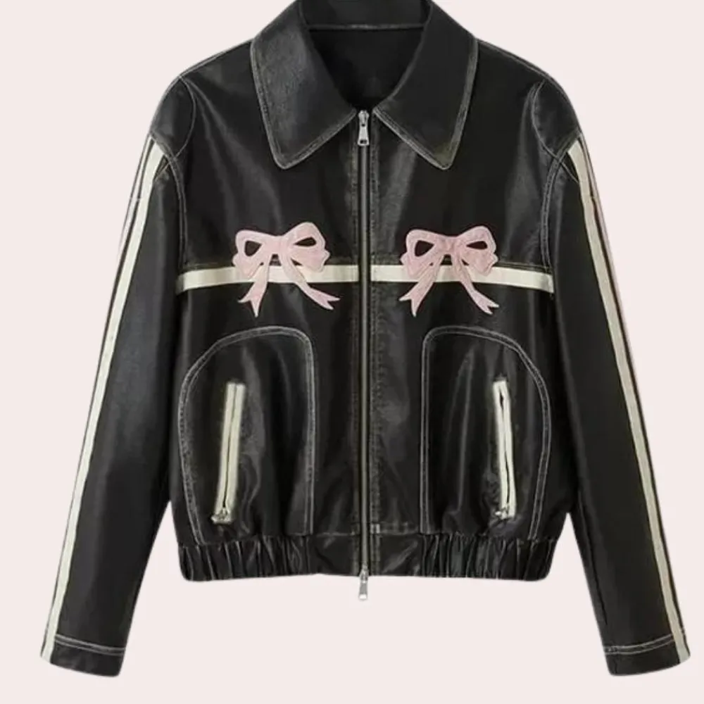 Draag de Ursuline Klassiek damesjasje met luxe strikdetail dag en nacht, en combineer hem met sneakers voor een informele uitstraling.