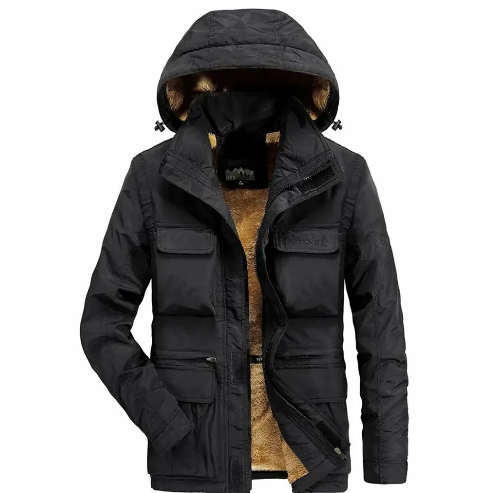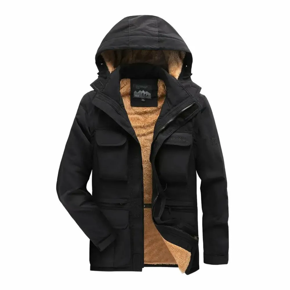 Luxe laagjes: Onze FRANCIS Winterjas voor heren met afneembare capuchon is jouw paspoort naar winterse glamour, ontworpen om warmte en bescherming te bieden tijdens de koudere maanden. Deze jas heeft meerdere zakken voor extra stijl en gemak. Deze jas is zowel winddicht als waterdicht, voor optimaal comfort en duurzaamheid. Hij is gemaakt van hoogwaardig katoen en heeft een gezellige fleece voering voor extra warmte. De afneembare capuchon voegt veelzijdigheid toe aan deze op het leger geïnspireerde jas, waardoor hij geschikt is voor verschillende weersomstandigheden. Blijf modieus en voorbereid met deze praktische en stijlvolle winterjas.