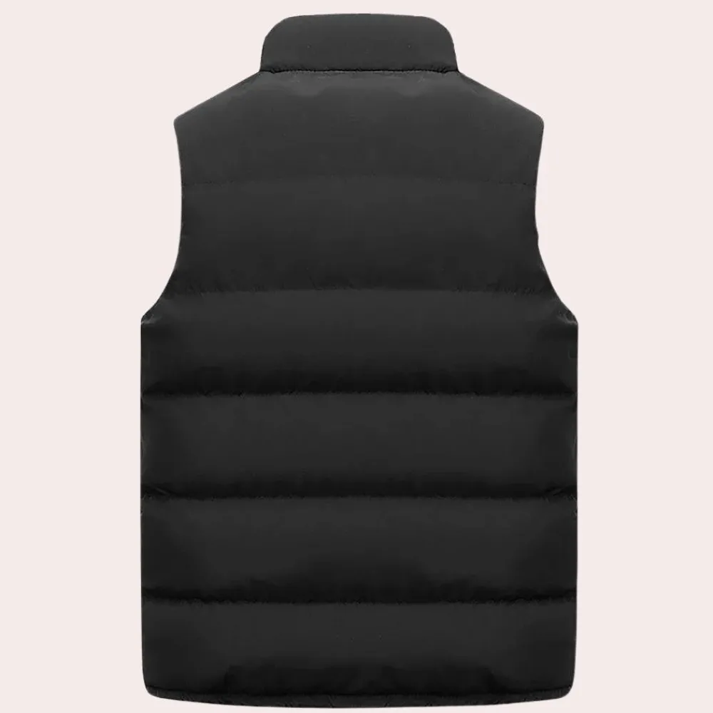 Ontdek ons Warm en gewatteerd herenvest, een elegante en comfortabele toevoeging aan je garderobe. Dit veelzijdige kledingstuk is zorgvuldig vervaardigd en ontworpen om zowel stijlvol als functioneel te zijn. Het biedt een comfortabele pasvorm en geeft je vertrouwen in je dagelijkse outfits.