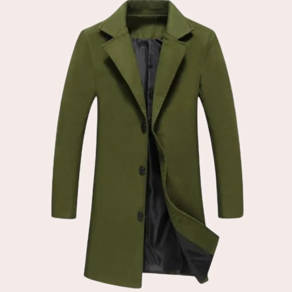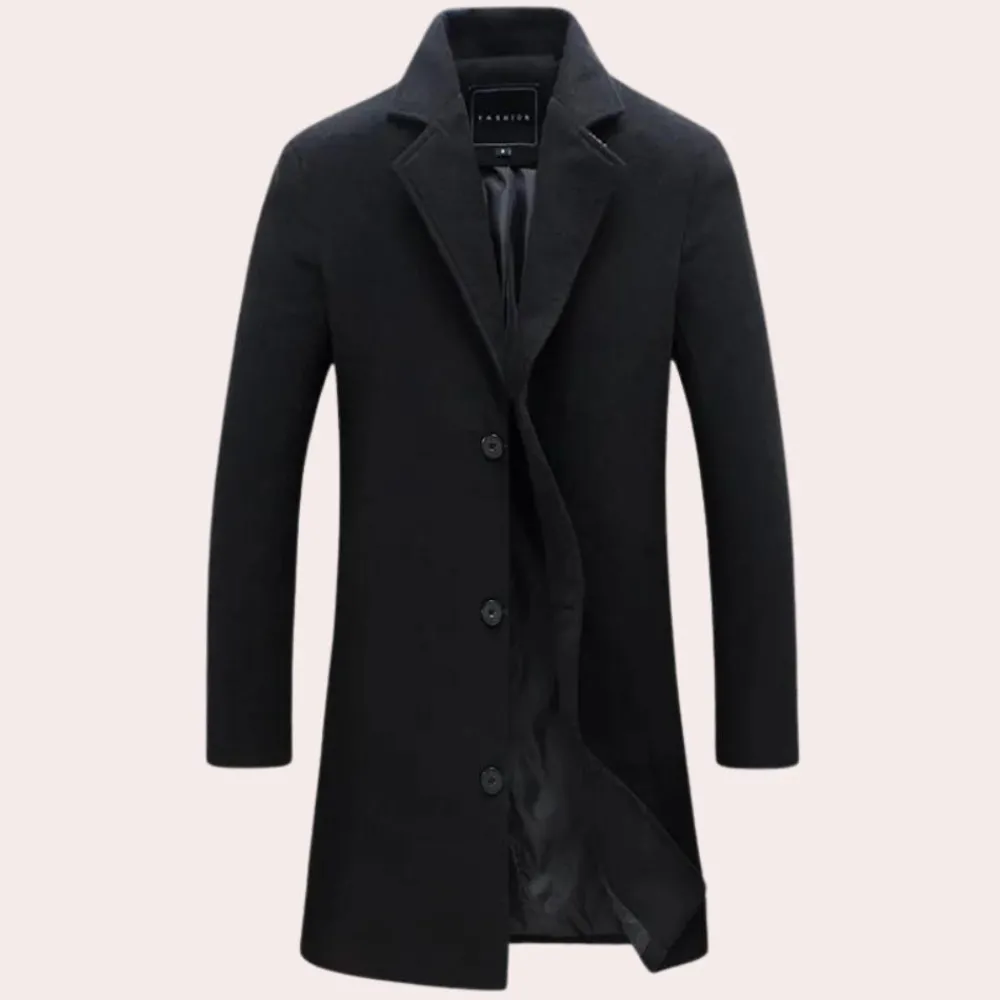 De Damian Moderne lange jas voor heren is gemaakt van hoogwaardige materialen en biedt zowel duurzaamheid als comfort. De lange lengte en het klassieke ontwerp maken hem de ideale keuze voor verschillende gelegenheden, of je nu naar kantoor gaat, de stad verkent of een avondje uit gaat. De Damian Moderne lange jas voor heren combineert moeiteloos functionaliteit met mode en is een must-have voor de moderne man.