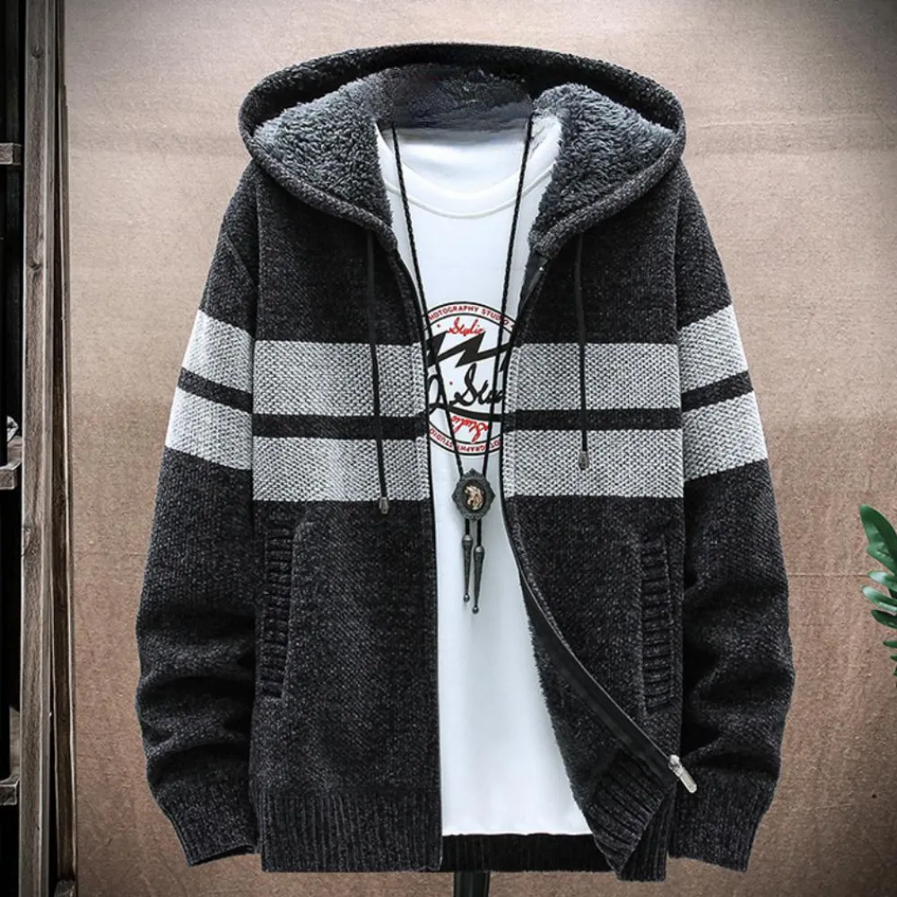Ontdek de Portier Warme herenjas met capuchon, een perfecte mix van comfort en stijl.
