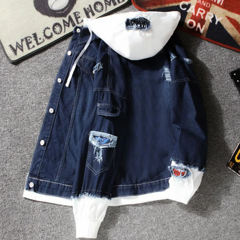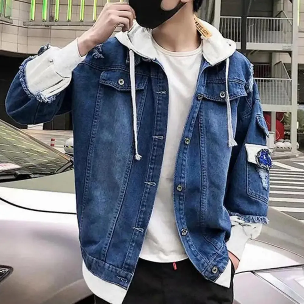 Stijlvol denim herenjack van gemĂȘleerde stoffen.