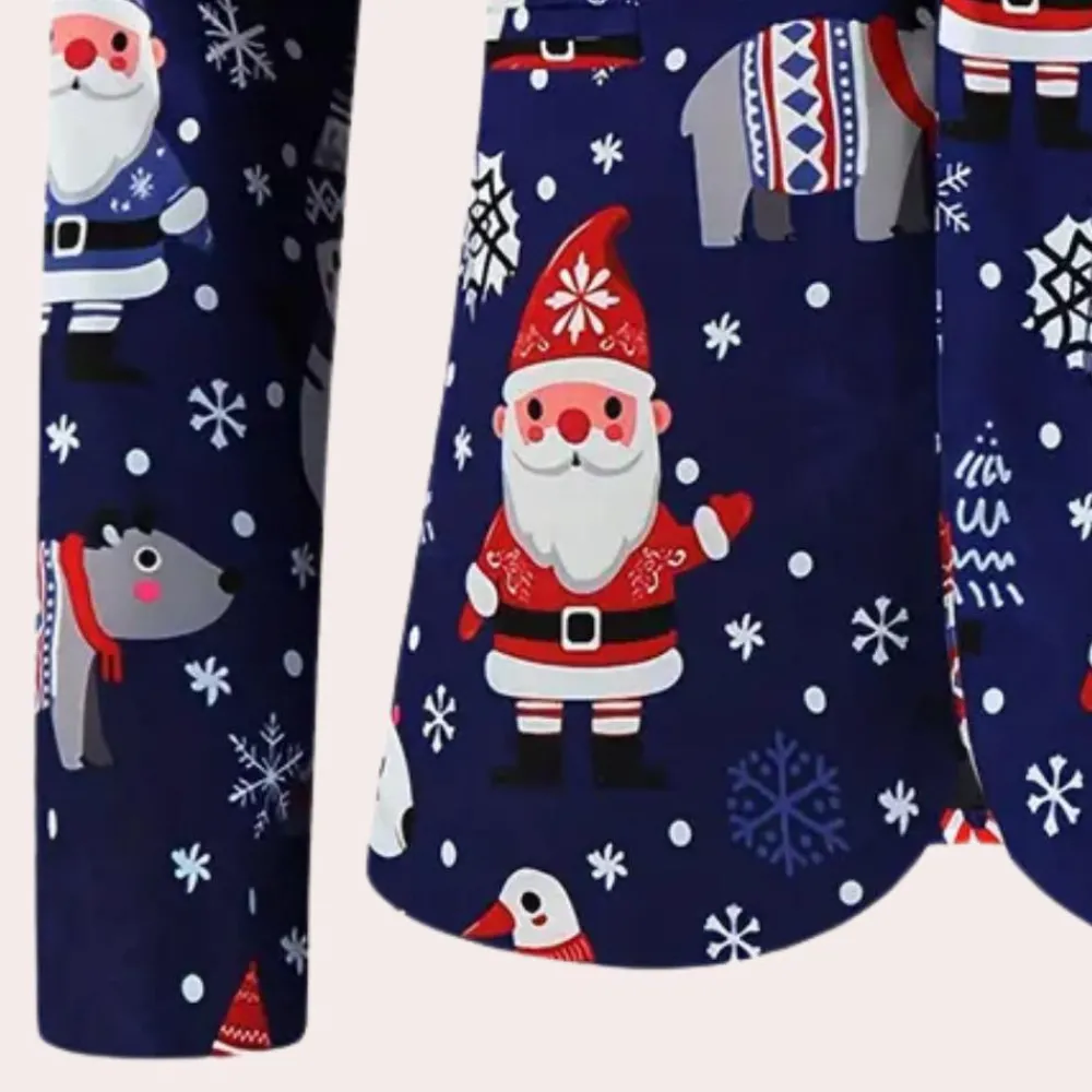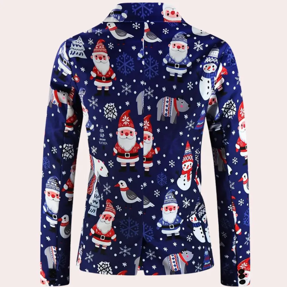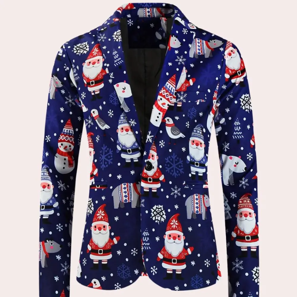 De REGGIS – Modieuze Kerstblazer voor Heren is de ideale keuze om je feestelijke stijl naar een hoger niveau te tillen. Deze blazer is perfect om een speelse indruk te maken op elke feestelijke bijeenkomst.