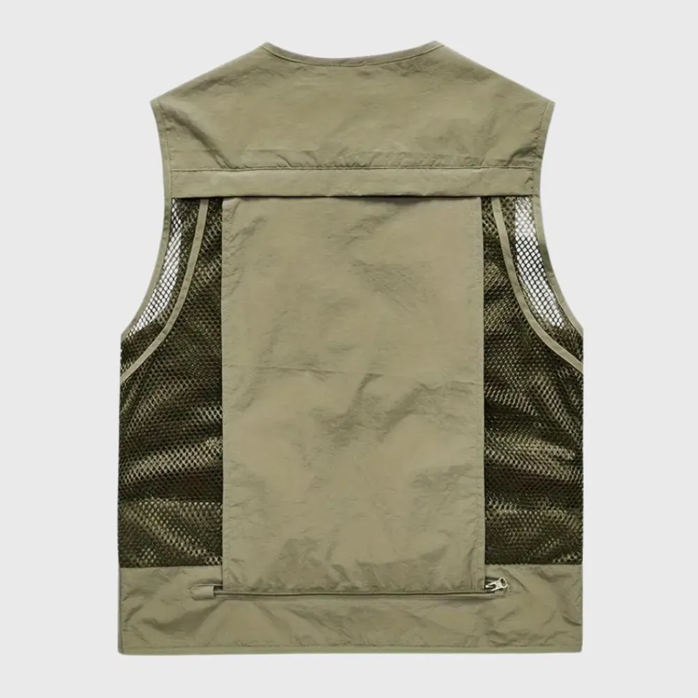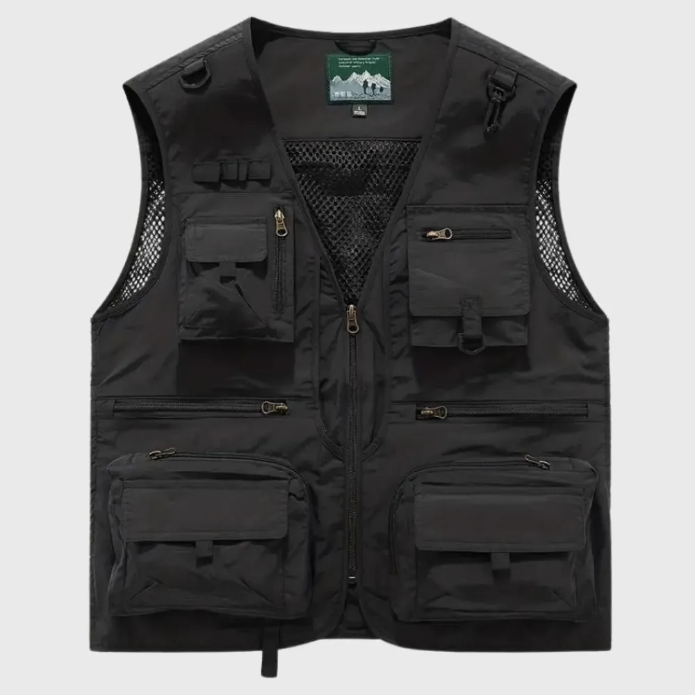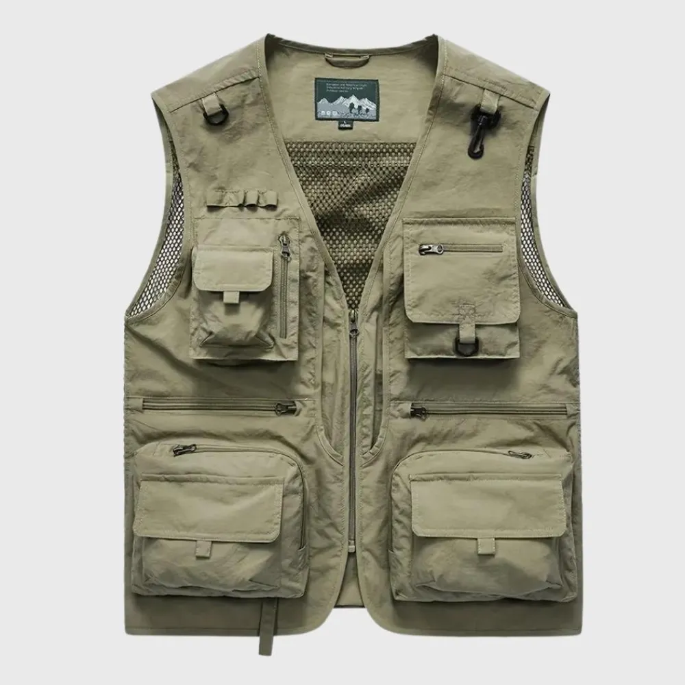 Hier heb je onze Troels Ademend cargo herenvest met meerdere zakken. Deze vest is zowel comfortabel als stijlvol voor uitgaan, maar ook voor thuis op de bank. Deze vest is gemaakt van een comfortabele stof die geschikt is voor de lente, herfst en winter.