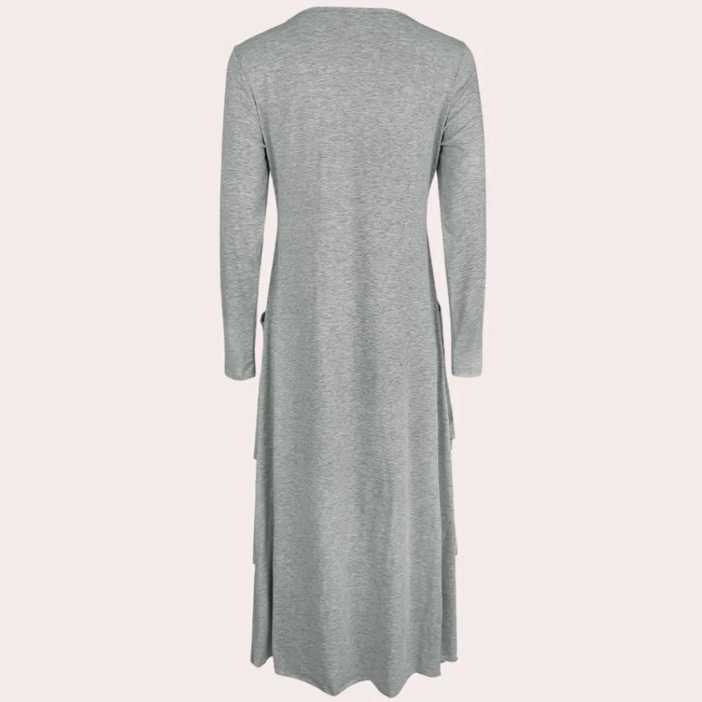 Transformeer je garderobe en voeg een vleugje stijl toe aan je dagelijkse look met de ABEBA Casual lange jurk! Deze jurk is een must-have voor elke vrouw die haar kledingkast wil verbeteren. Met zijn elegante A-lijn ontwerp, O-halslijn en lange mouwen, is deze jurk perfect voor elk seizoen en elke gelegenheid.