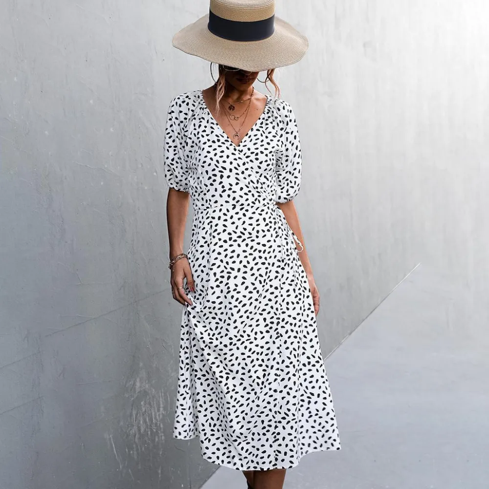 Maak je klaar om een fashion statement te maken met de Summer Cross V-hals Split Dress. Blijf de hele zomer stijlvol, comfortabel en trendy!