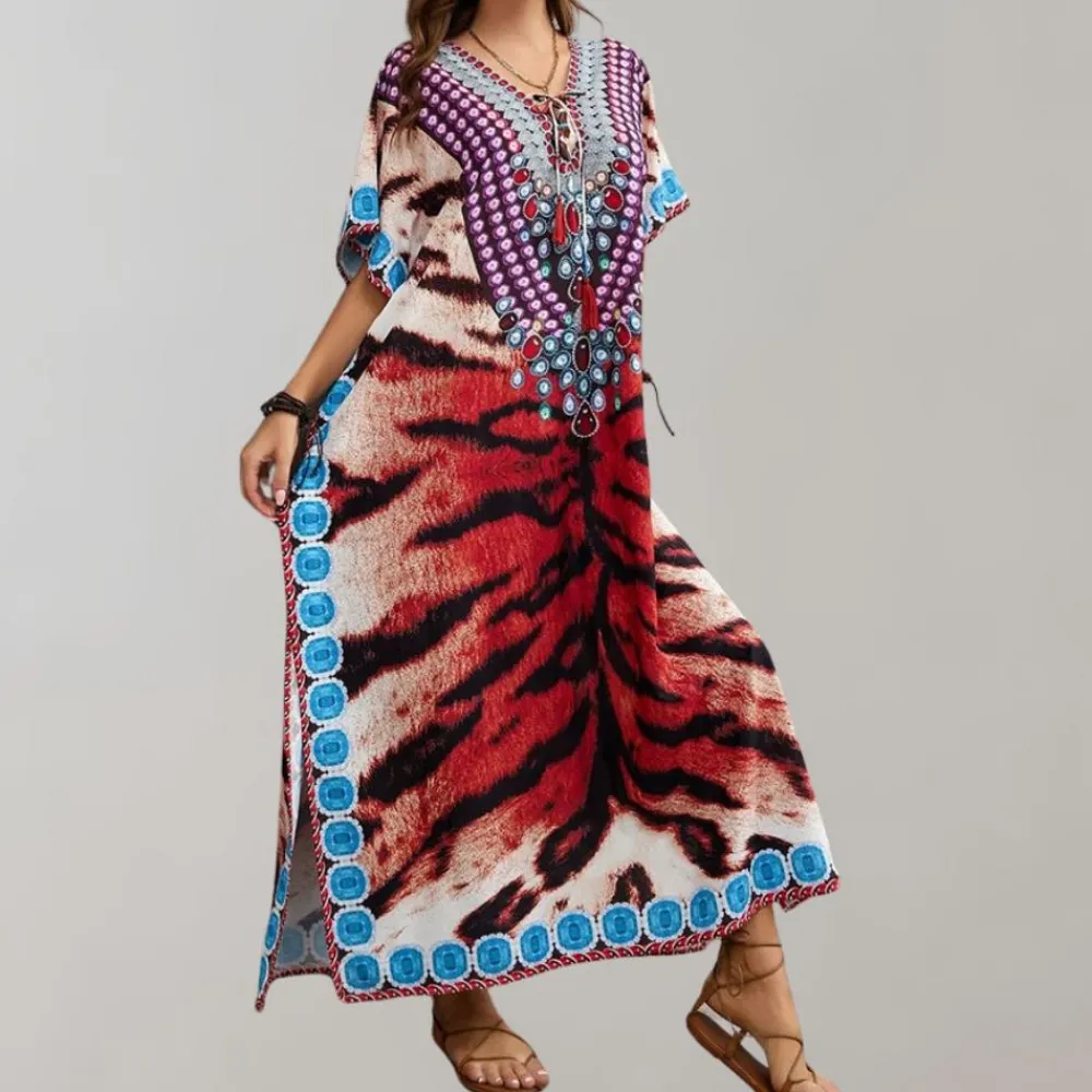 Bekijk onze Alma Comfortabele damesjurk. Deze jurk is zeer comfortabel en stijlvol om te dragen als je uitgaat. Deze jurk is gemaakt van ademende en comfortabele stof en is ideaal voor de lente en de zomer.