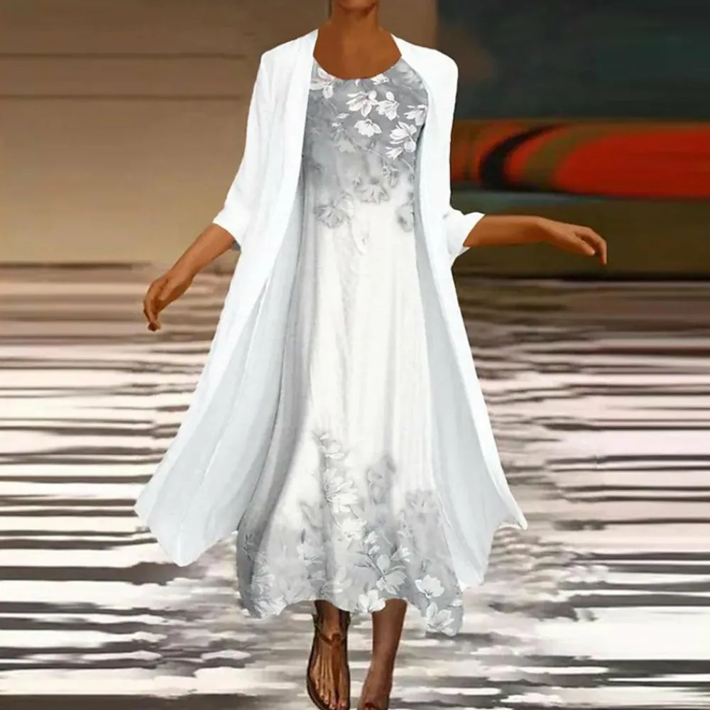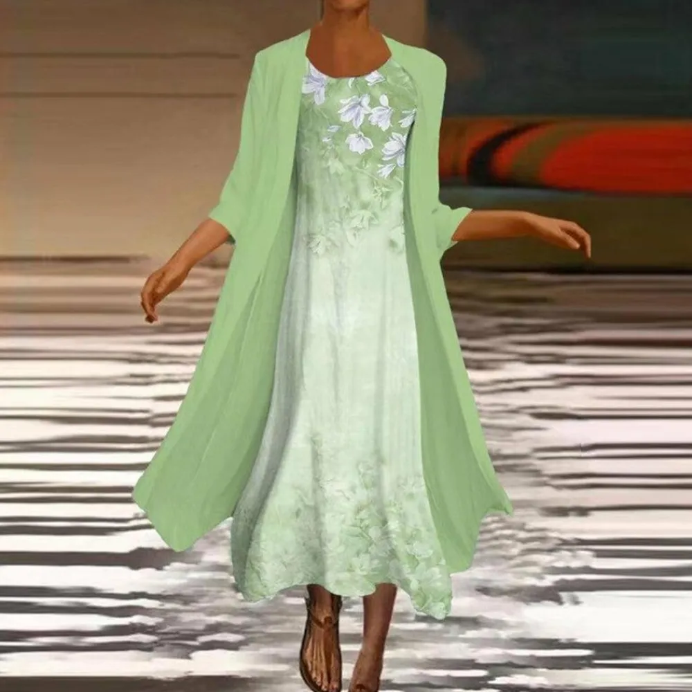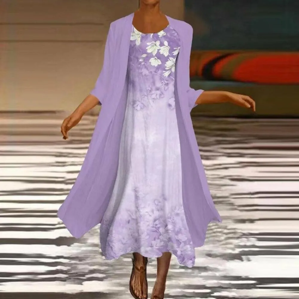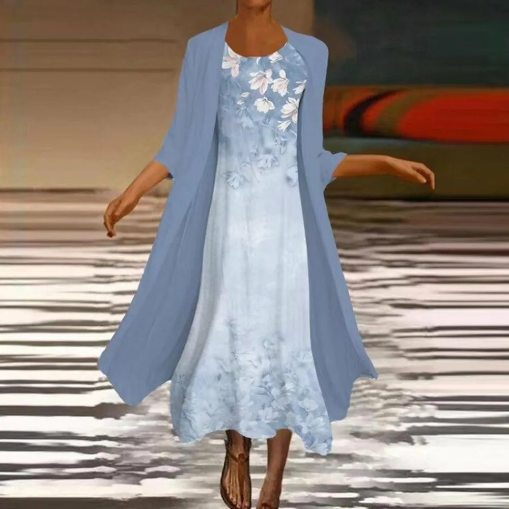 Waarom kiezen voor de Amora lange jurk met blouse jasje voor dames: