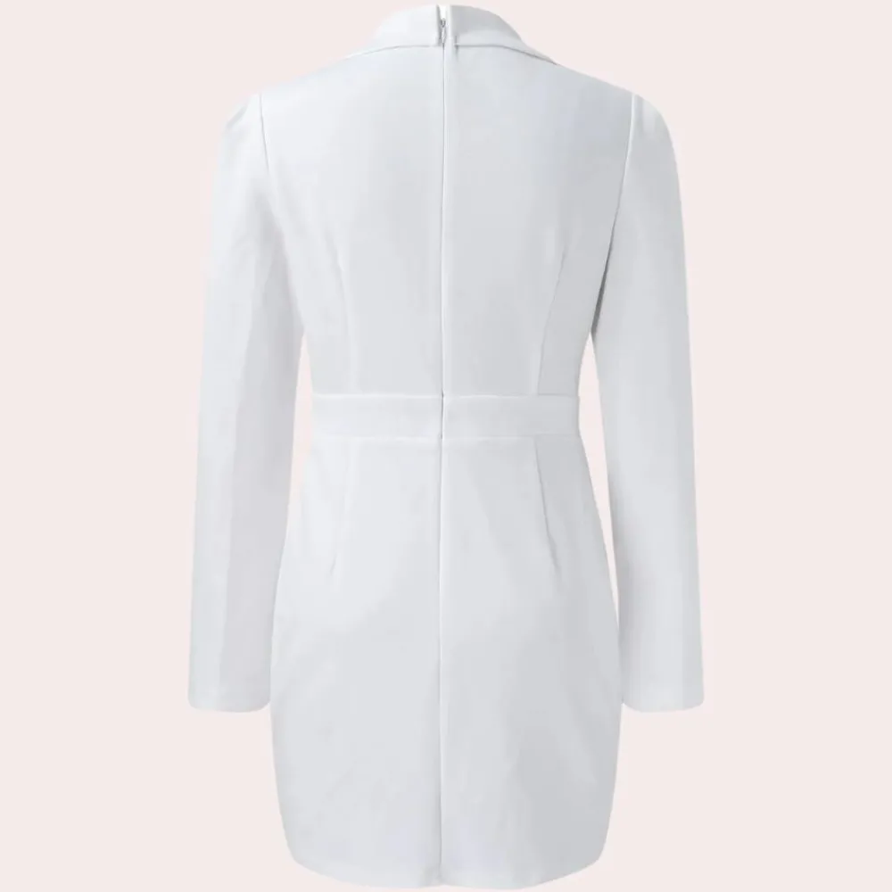 Deze stijlvolle en unieke blazerjurk is perfect om het vrouwelijke lichaam mooi te accentueren. Hij is geschikt voor zowel casual als speciale gelegenheden. De hoogwaardige stoffen van konijnenhaar maken deze blazerjurk een must-have in de garderobe van elke vrouw.