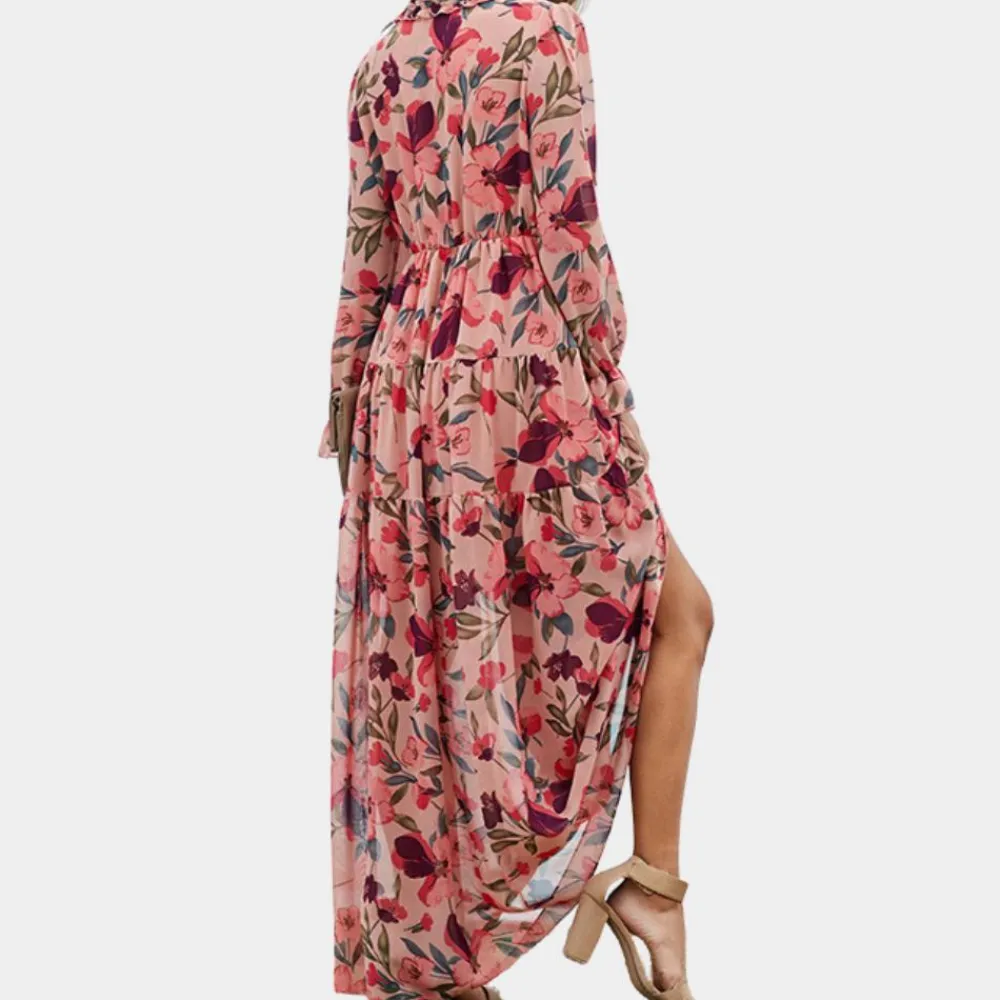Laat je betoveren door de Aubrey lange damesjurk met een sierlijke bloemenprint en een elegante v-hals. Deze is niet alleen perfect voor warme zomerdagen, maar ook voor speciale gelegenheden waarbij je elegantie en comfort wilt combineren.