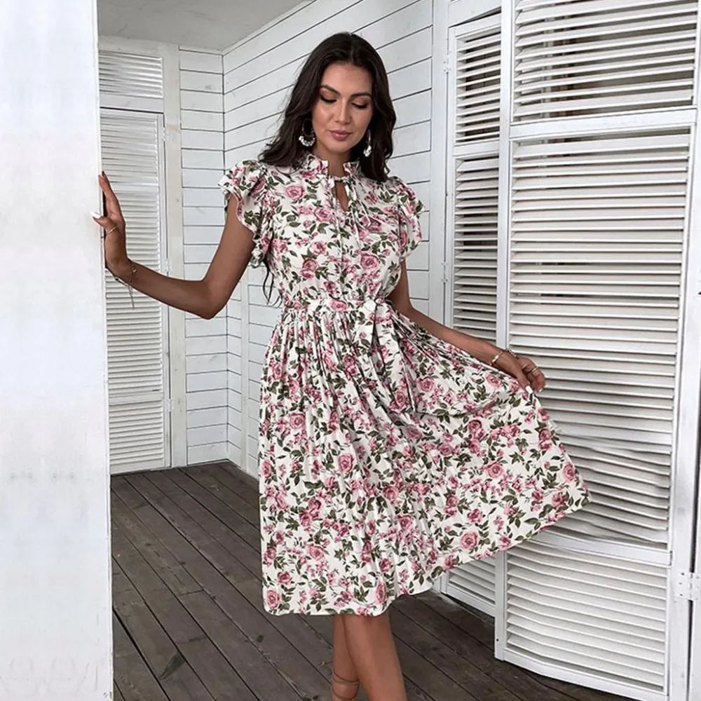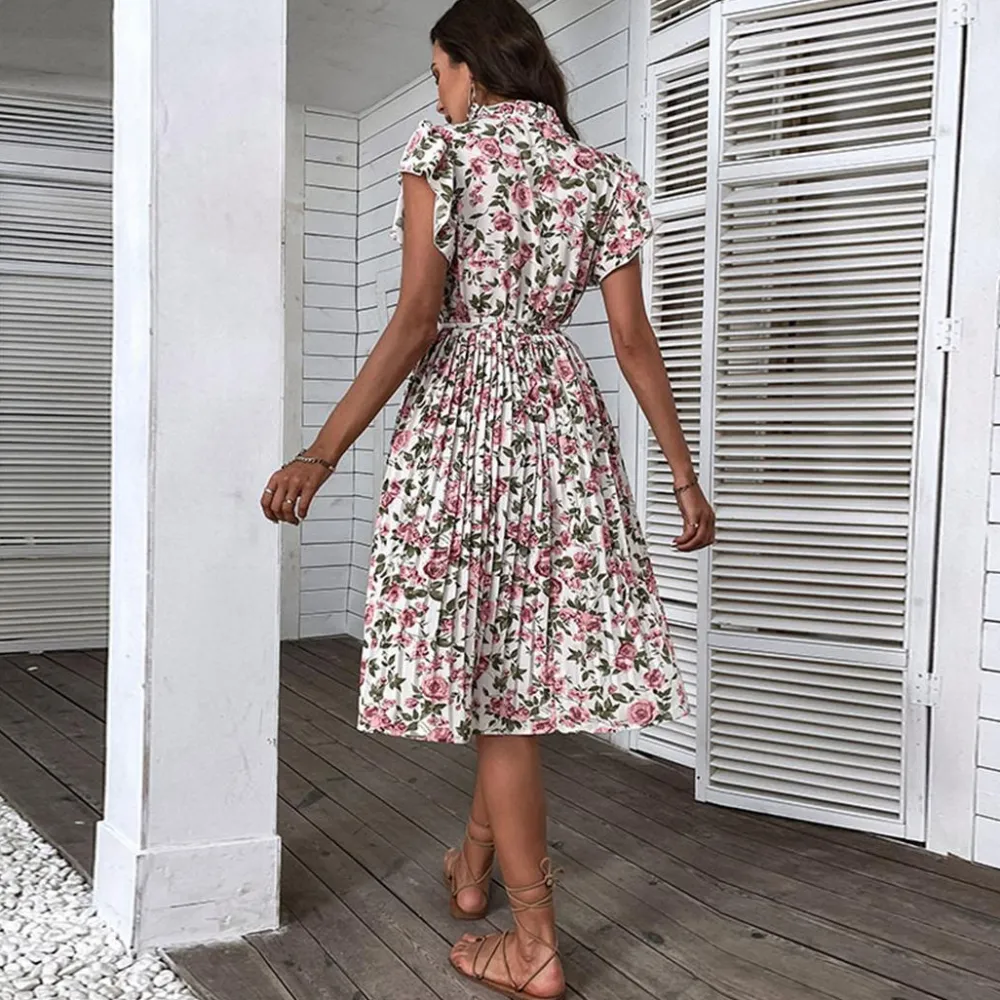 Deze prachtige mid-rise jurk heeft een prachtig roze rozenpatroon dat vrouwelijkheid en charme uitstraalt. CAPUCINE Stijlvolle bloemenjurk is gemaakt van een vloeiende en lichtgewicht stof en heeft een flatterende en vrouwelijke pasvorm die perfect is voor alle lichaamstypes. De lengte halverwege de kuit geeft de jurk een elegante uitstraling en maakt hem geschikt voor verschillende gelegenheden.