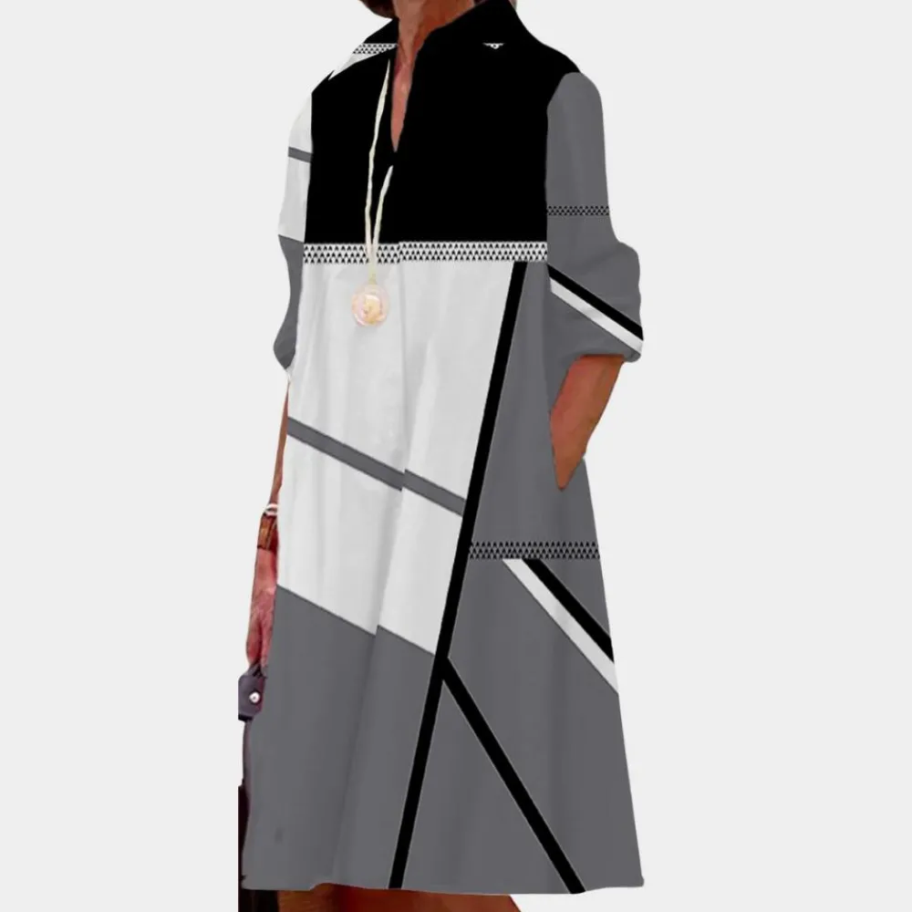 Casual bedrukte damesjurk is ontworpen om het vrouwelijke lichaam te flatteren. Hij is gemaakt van hoogwaardige stoffen die comfortabel zijn en het figuur accentueren. De blousejurk is verkrijgbaar in verschillende kleuren en maten.