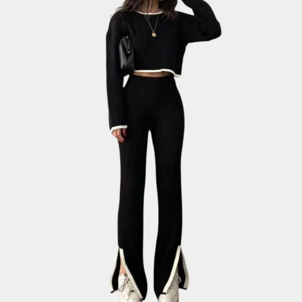 → Met Claire Stijlvolle tweedelige damesset zie je er zowel stijlvol als ontspannen uit.